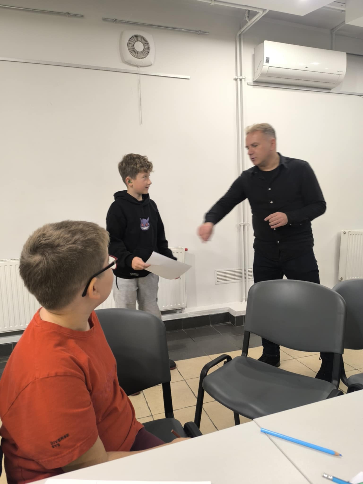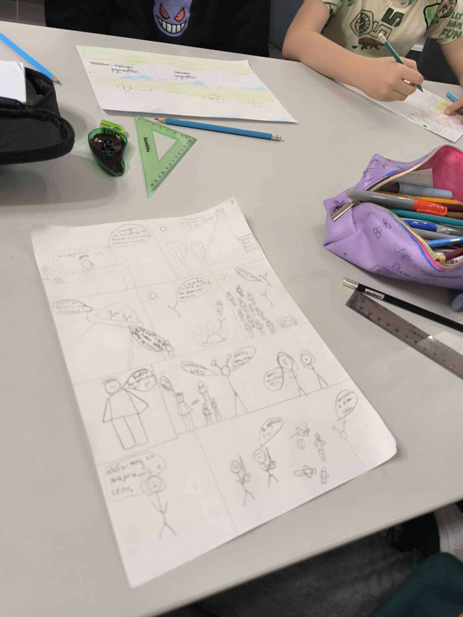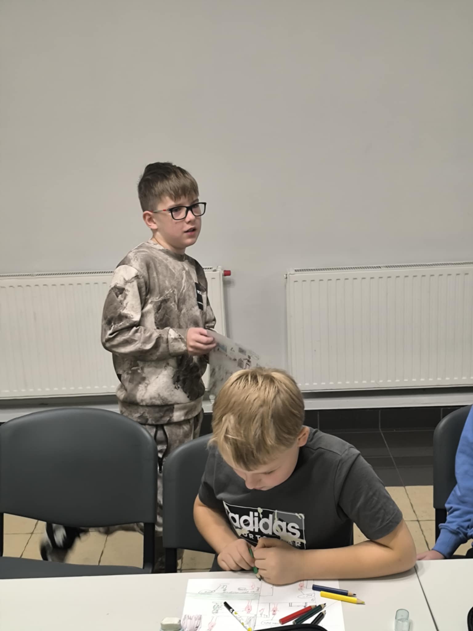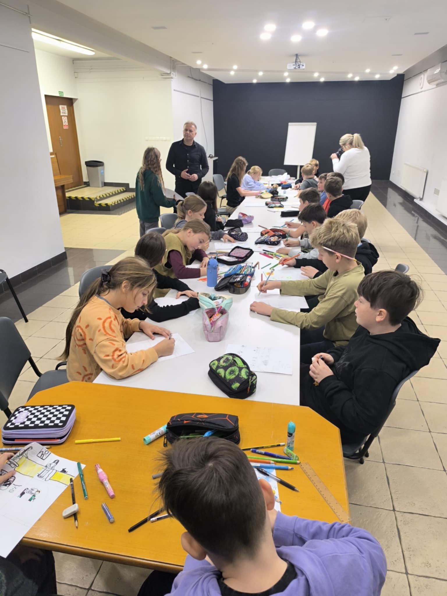 Pod jego okiem nasi młodzi twórcy odkryli, że komiks to nie tylko rysunki, ale i cały świat pełen pomysłów, emocji i… ołówkowych przygód. Na kartkach pojawili się kosmici w kapciach, psy-duchy, skłócone koty i psy (jak to w życiu bywa), piłkarze w akcji i podróżnicy, którzy z pewnością trafiliby nawet do Wolina, gdyby nie przerwa na drugie śniadanie.