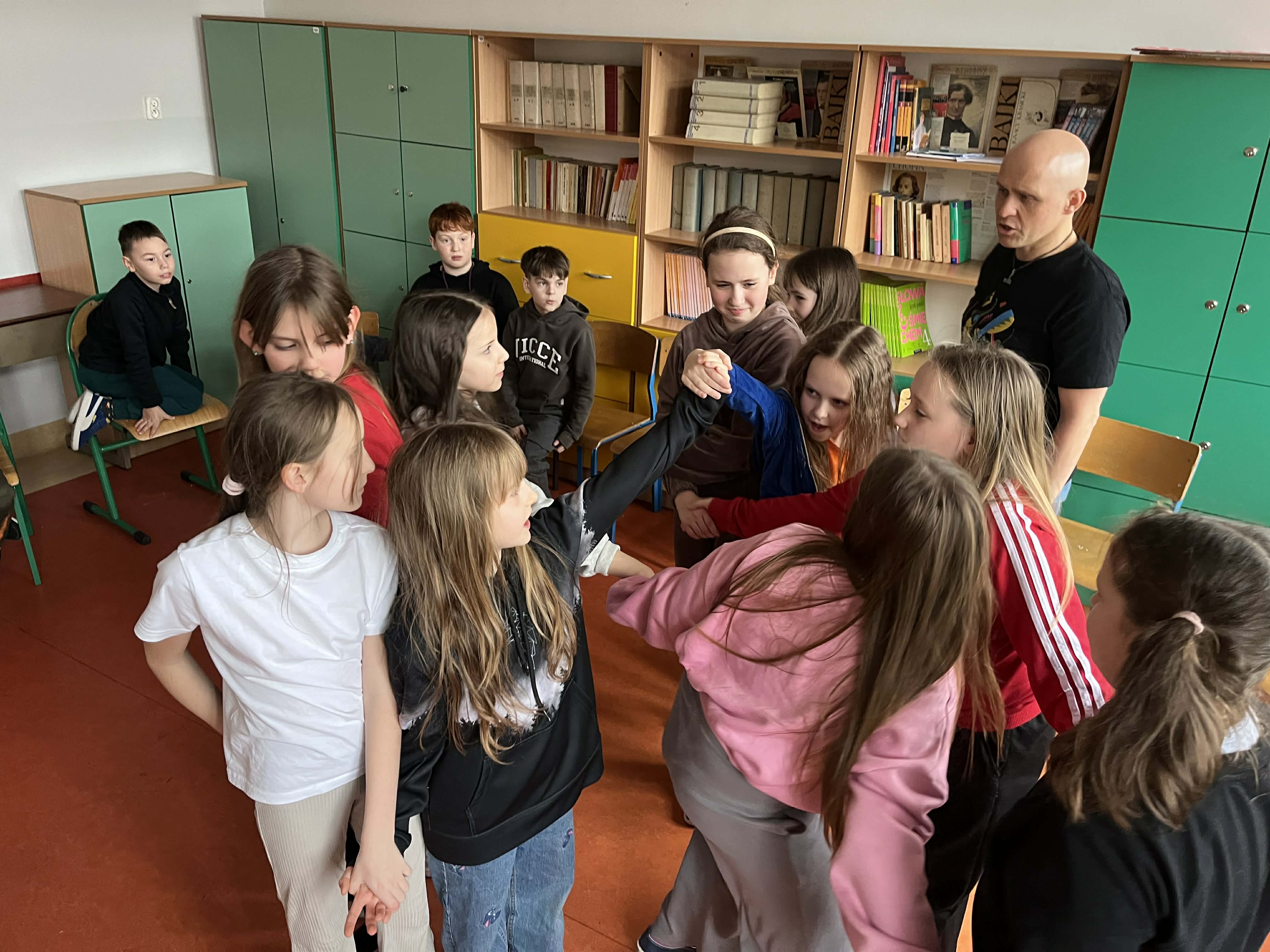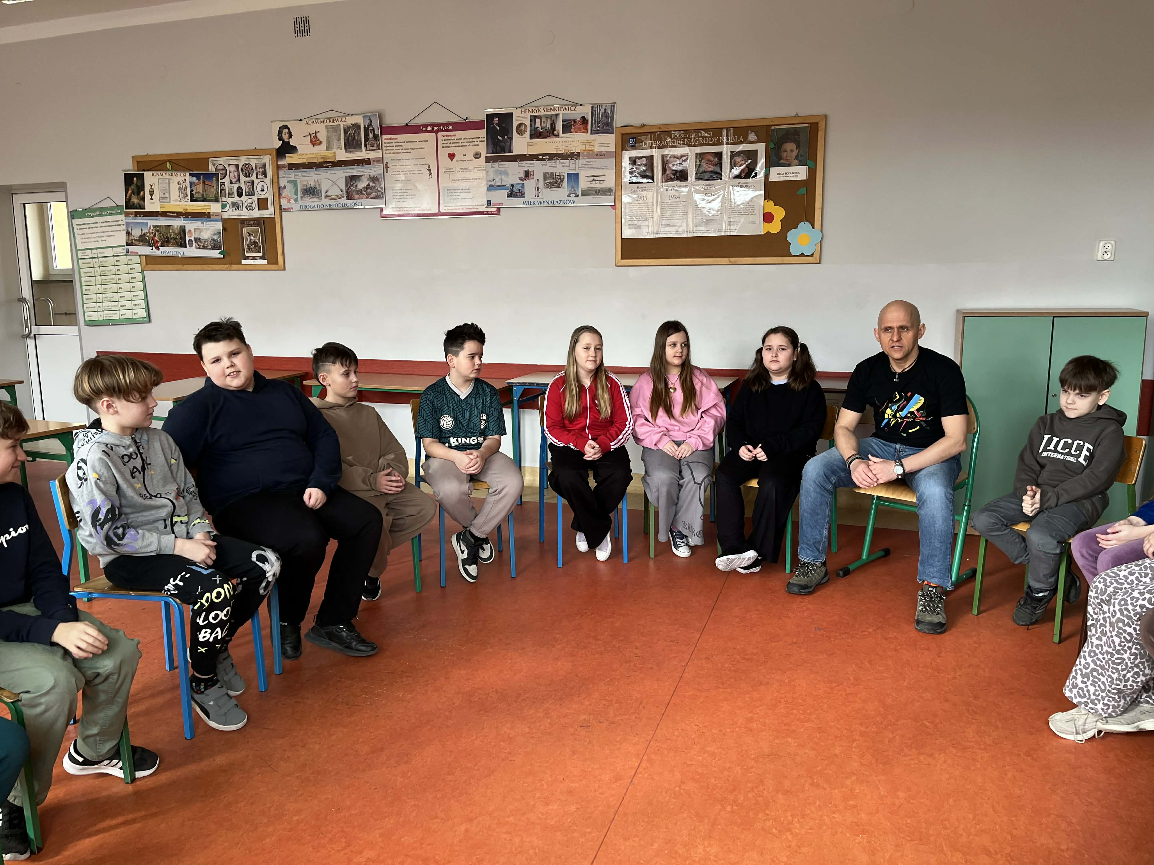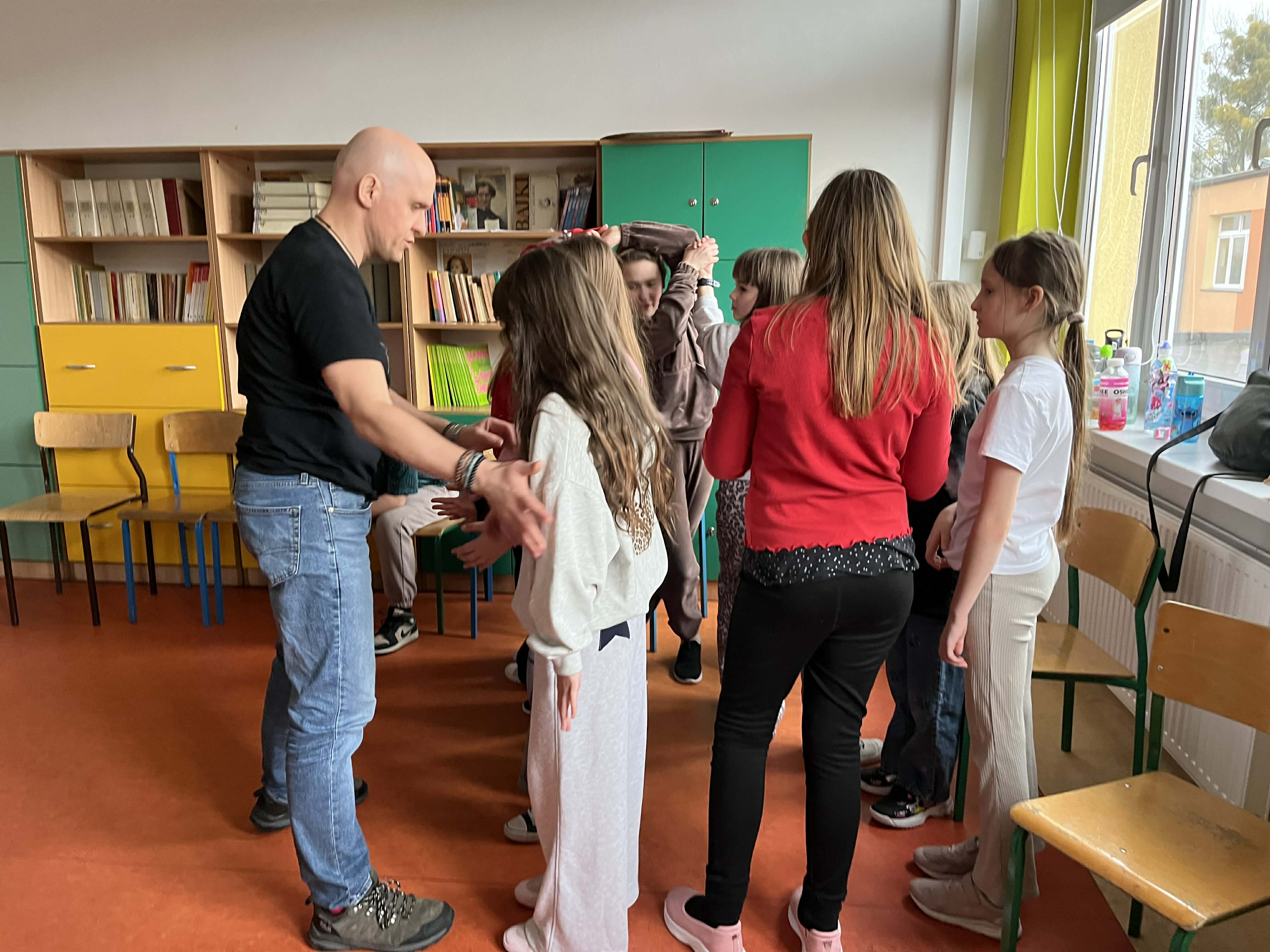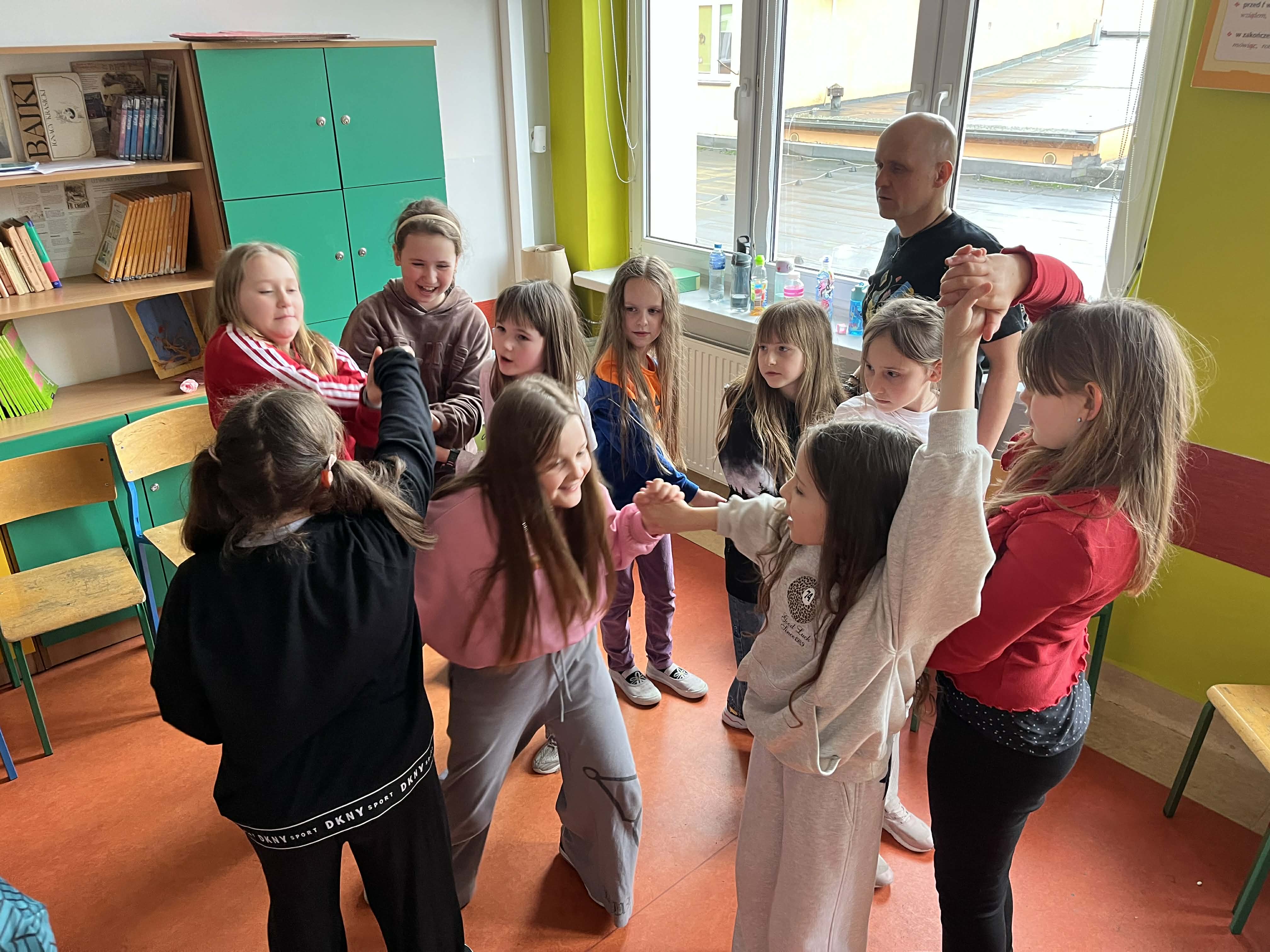 W poniedziałek, 23 lutego, klasa 3a uczestniczyła w warsztatach prowadzonych przez Pana Piotra, który przyjechał do nas z Krakowa. Podczas dwóch godzin warsztatów realizowaliśmy szkolny program profilaktyki pod hasłem: Apteczka Pierwszej Pomocy Emocjonalnej, a w nim: kształtowanie optymizmu, pozytywnej samooceny, umiejętności radzenia sobie ze stresem i budowanie relacji.