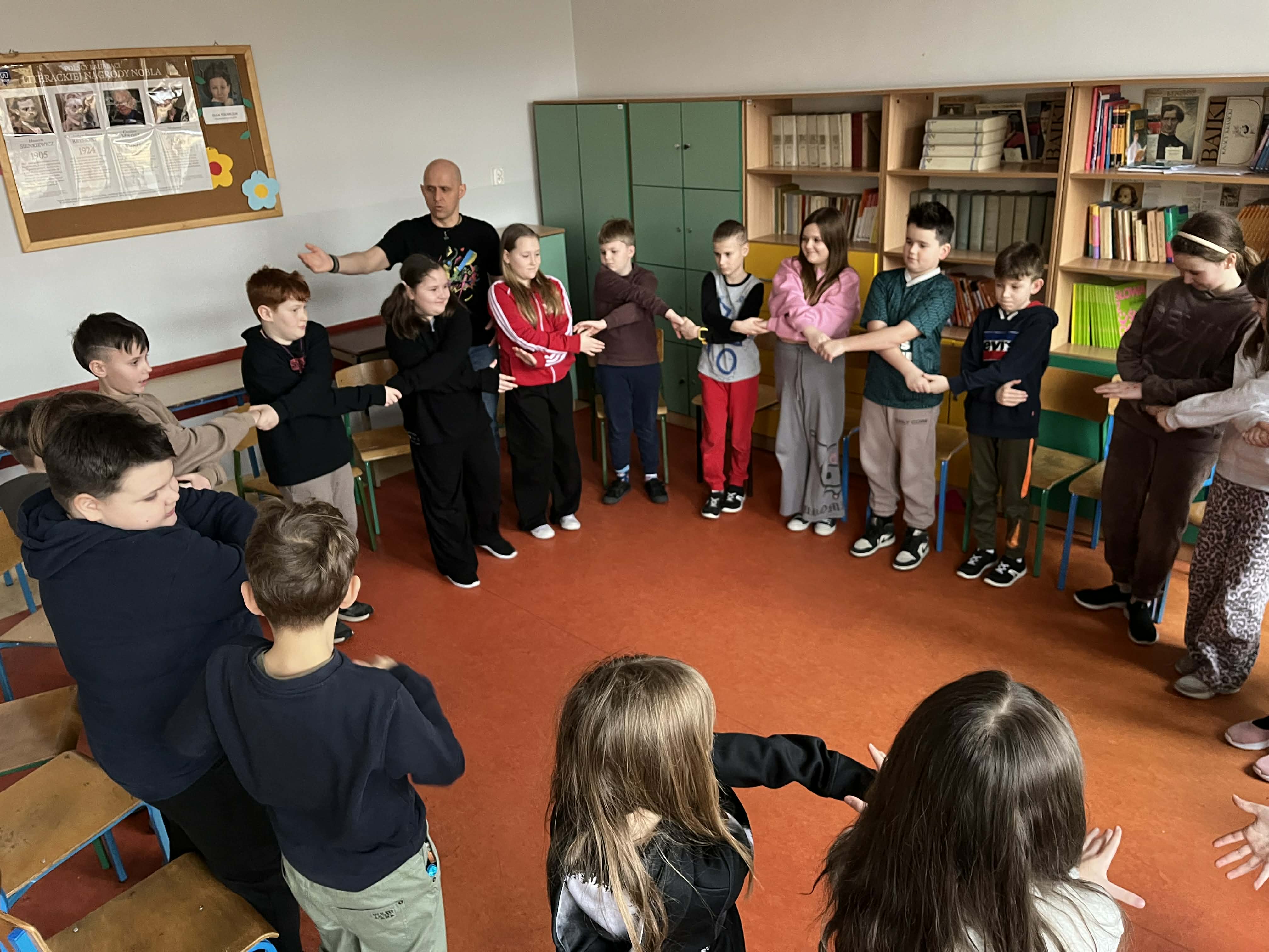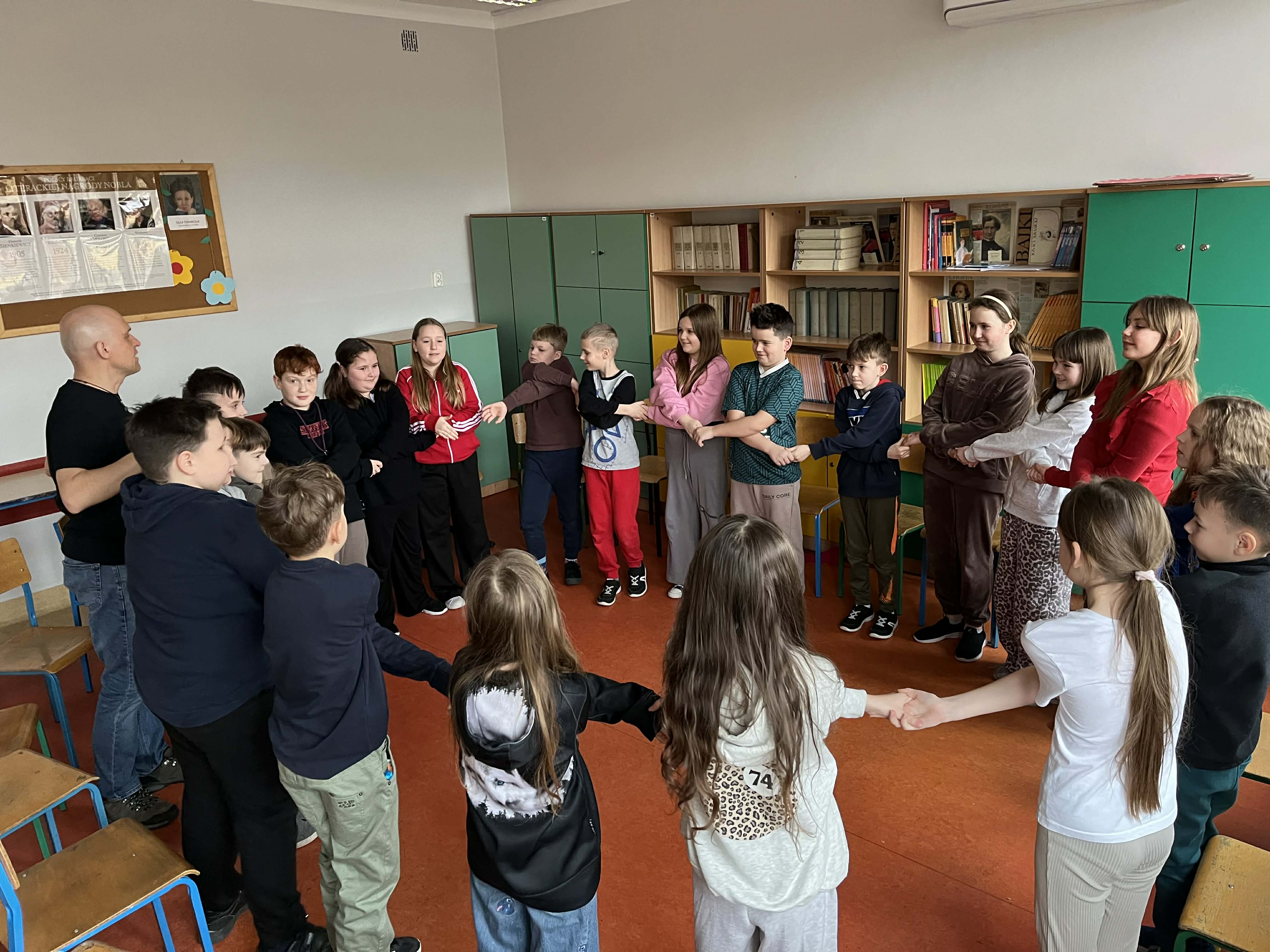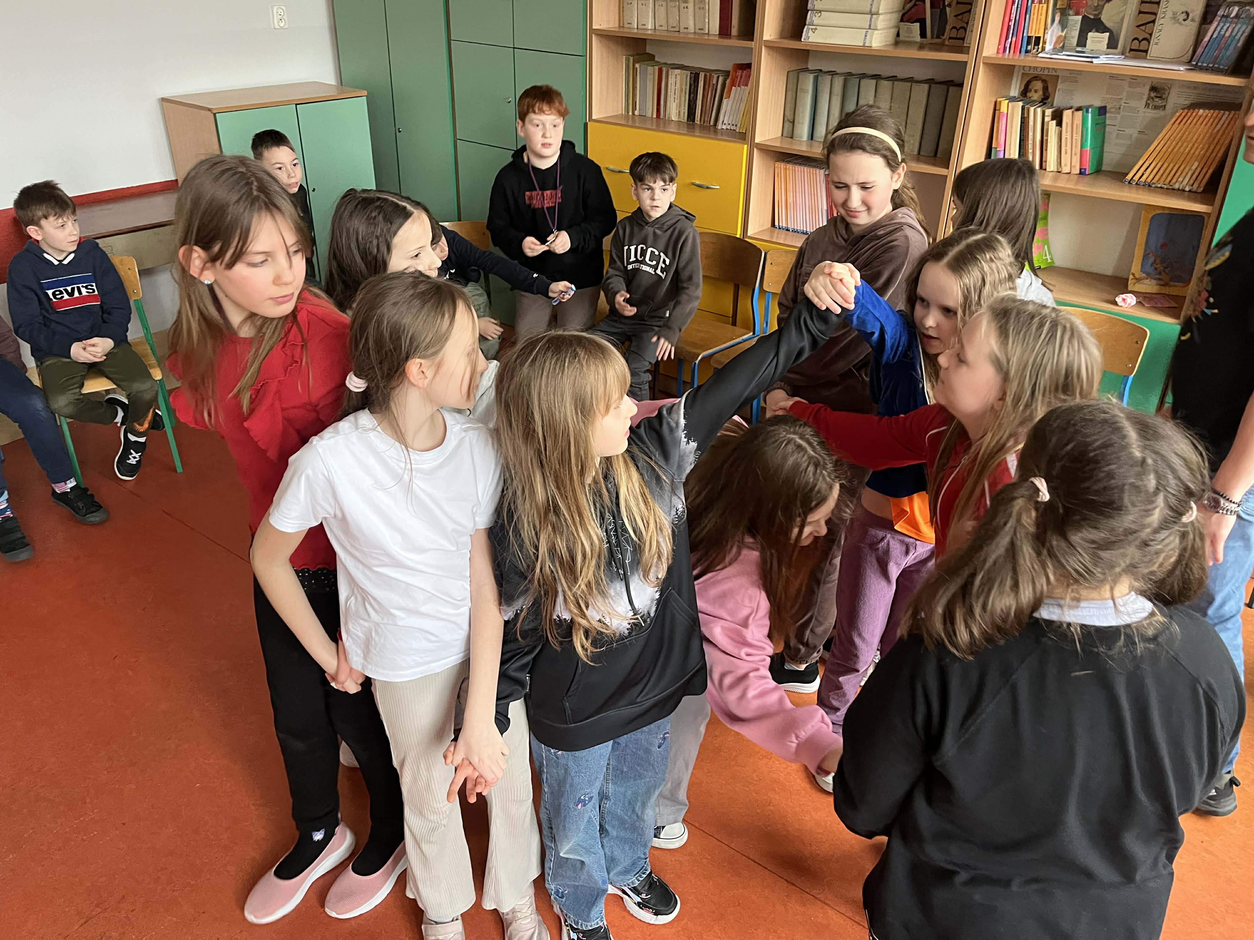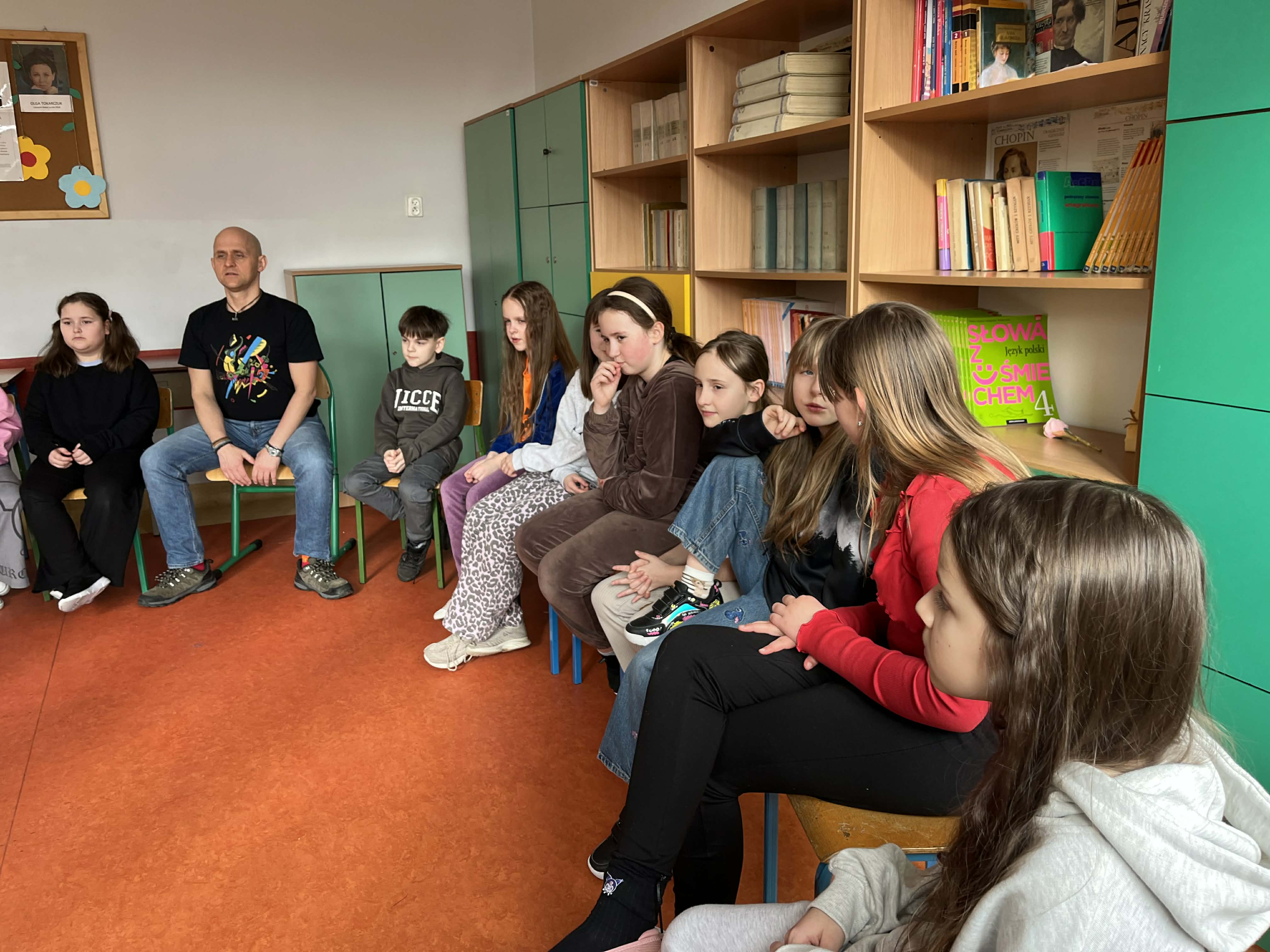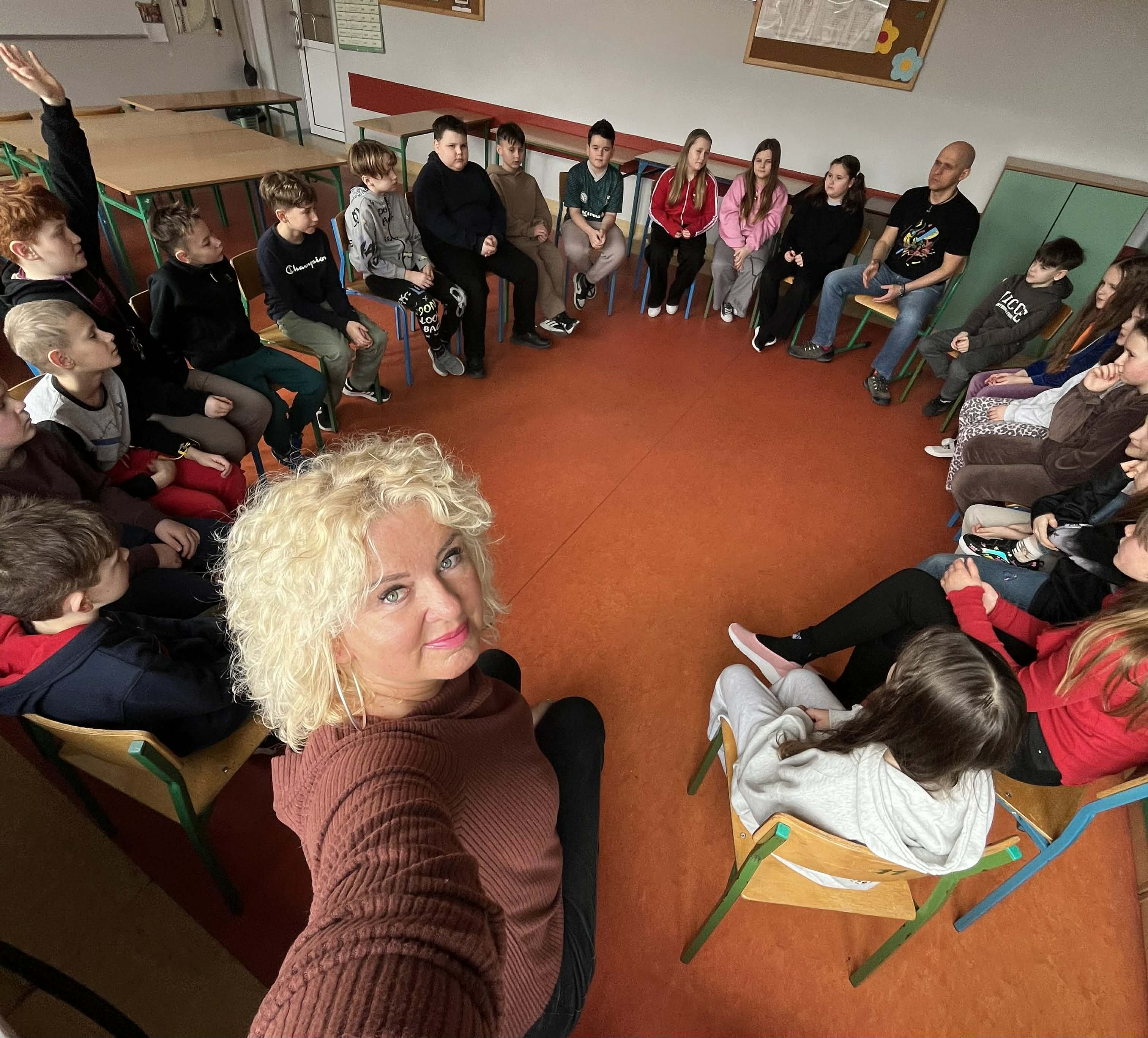 W poniedziałek, 23 lutego, klasa 3a uczestniczyła w warsztatach prowadzonych przez Pana Piotra, który przyjechał do nas z Krakowa. Podczas dwóch godzin warsztatów realizowaliśmy szkolny program profilaktyki pod hasłem: Apteczka Pierwszej Pomocy Emocjonalnej, a w nim: kształtowanie optymizmu, pozytywnej samooceny, umiejętności radzenia sobie ze stresem i budowanie relacji.