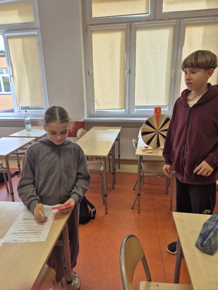Na ostatnich lekcjach języka polskiego w klasie 6b miały miejsce niezwykłe zajęcia związane z ww. książką Ferenca Molnara, przeprowadzone przez Anię Sowińską i Hanię Szymczak. Dziewczyny przygotowały się bardzo dokładnie i wszechstronnie. Nie zabrakło: testów znajomości powieści, związanej z lekturą krzyżówki, dyktanda, a nawet Koła Fortuny. Dzięki tym wszystkim zadaniom, uczniowie mogli wspaniale utrwalić treść tej wzruszającej książki. Brawo, Dziewczyny! Dziękuję za Wasz wysiłek i wzorowo przeprowadzone lekcje!