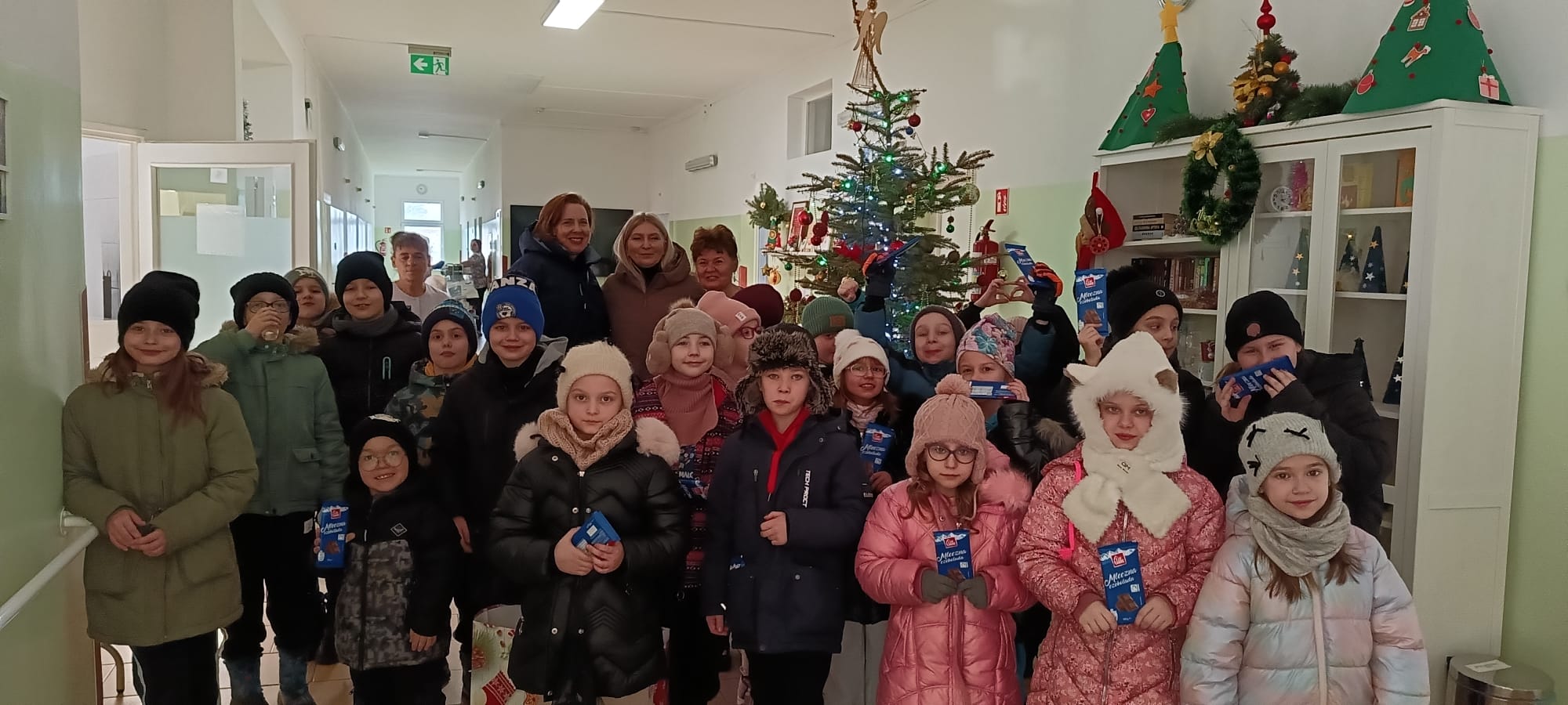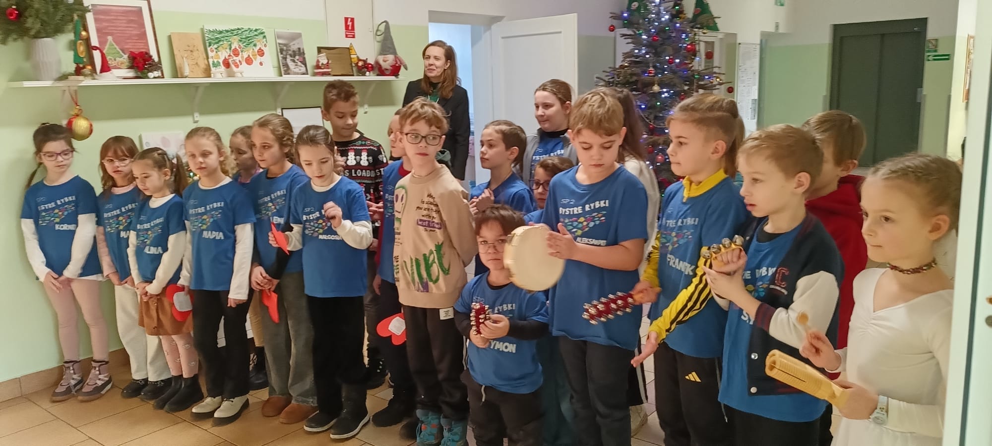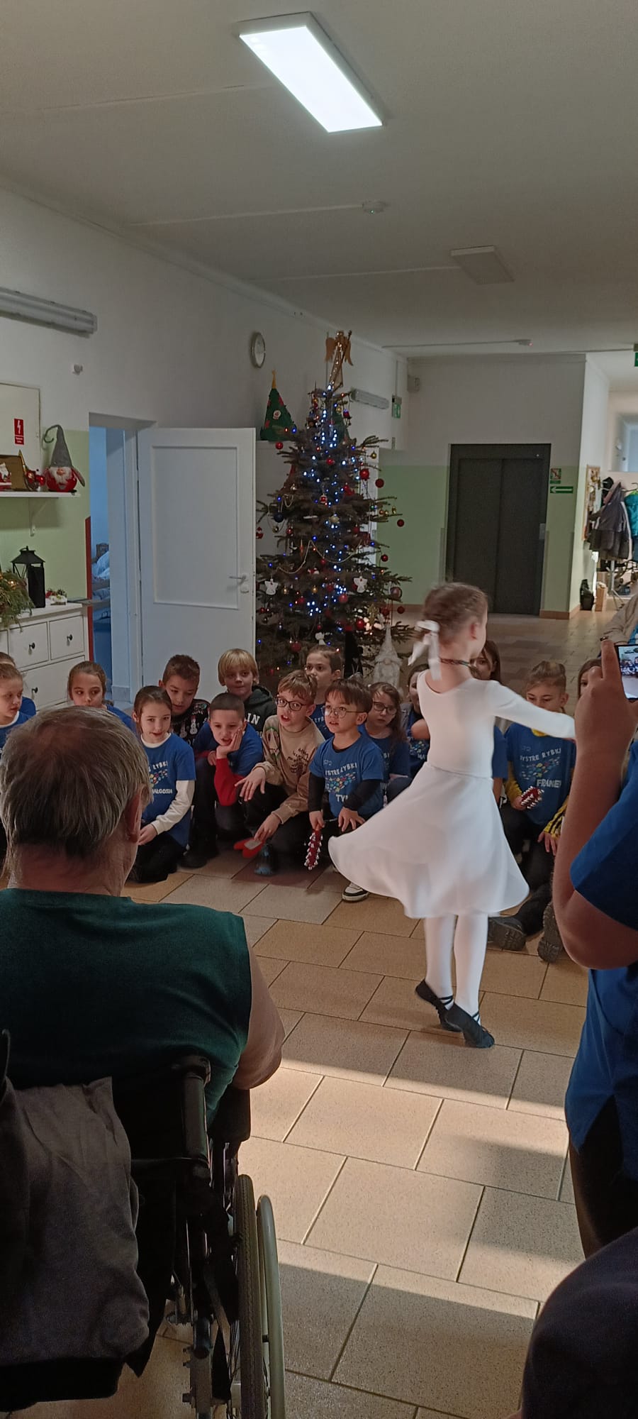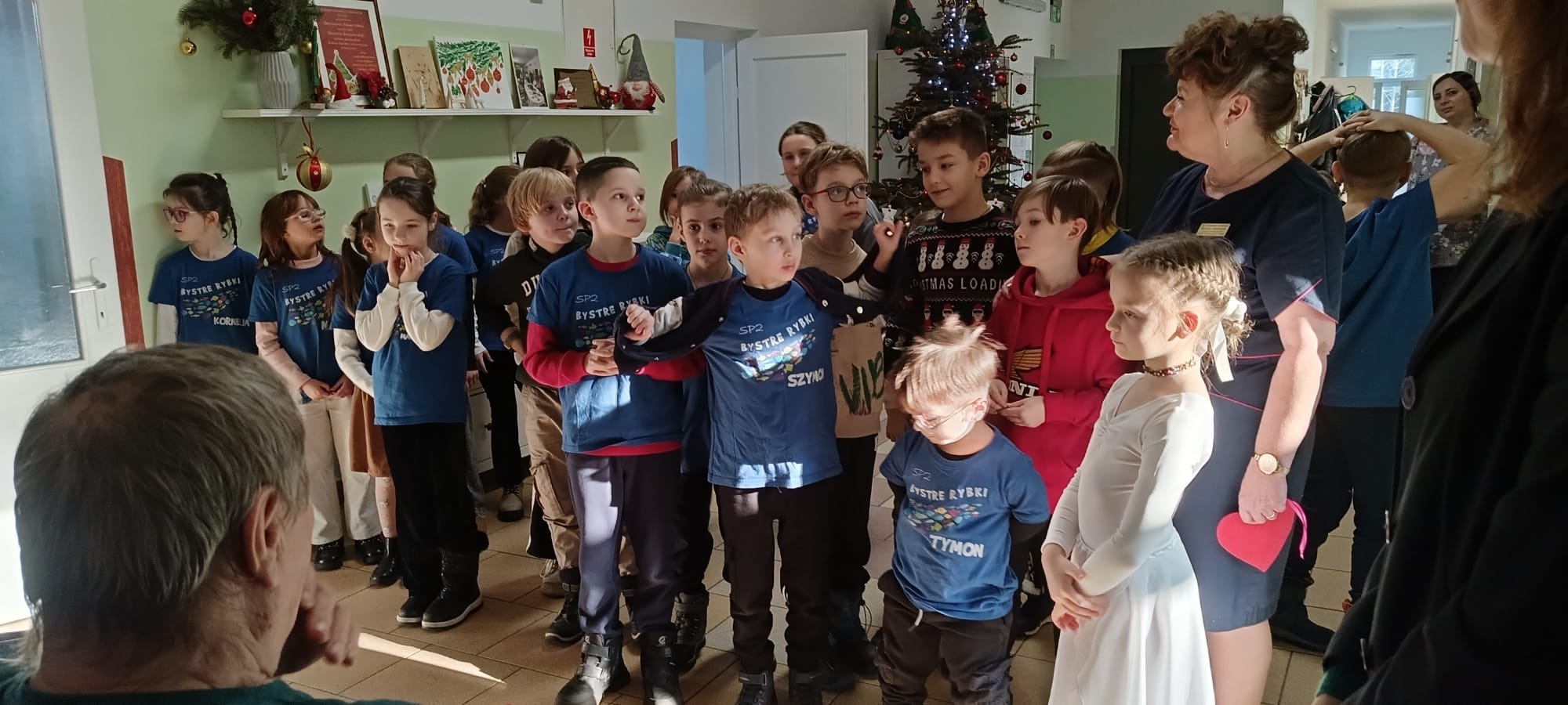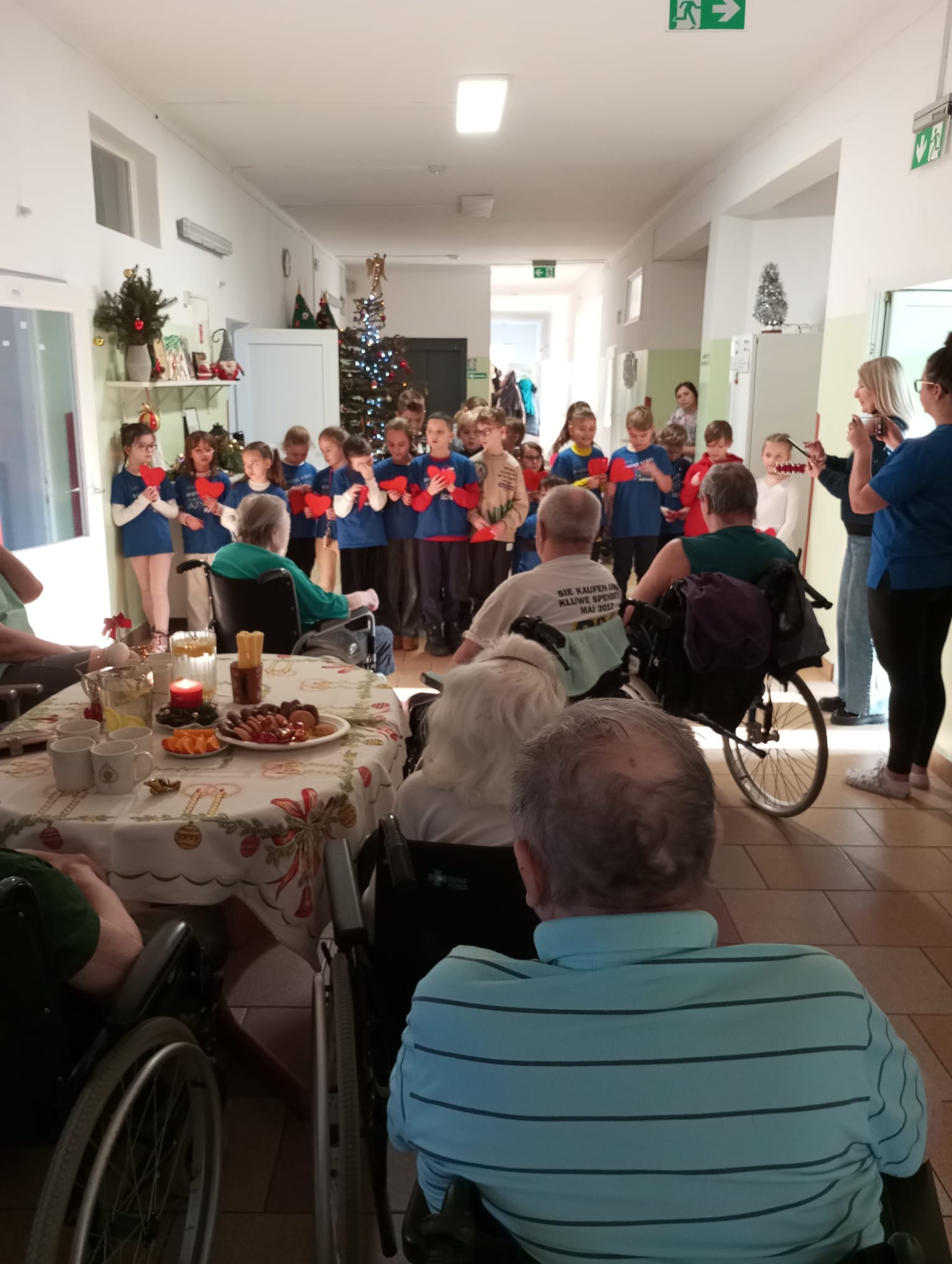 Dla pani Beaty Rucińskiej i jej wychowanków z klasy 2 b mroźny dzień 22 stycznia 2026 r. był dniem przepełnionym miłością, dobrem, serdecznością i ciepłem, którą ofiarowali samotnym, starszym, schorowanym osobom z Goleniowskiego Zakładu Opiekuńczo – Leczniczego. Tego dnia na chwilę zagościliśmy pod ich dachem z uśmiechami na twarzy, śpiewaliśmy kolędy i pastorałki, dziewczynki i chłopcy mówili wierszyki ukazujące prawdę o bezcennej obecności babci i dziadka w życiu wnuków. Nasza utalentowana uczennica Julia zatańczyła i pojawiły się życzenia oraz pamiątka naszej obecności – SERCA dla każdej babci i dziadka. To były wyjątkowe odwiedziny pełne serdeczności i wzruszeń. Jesteśmy z siebie dumni, że utwierdziliśmy te osoby w przekonaniu, że nadal są ważne, potrzebne i kochane. Na naszych uczniów też czekała miła niespodzianka, którą przygotowały osoby pracujące w tym miejscu. (słodycze, maskotka, puzzle, gry planszowe) Postanowiliśmy wrócić tu jeszcze, nie jeden raz.