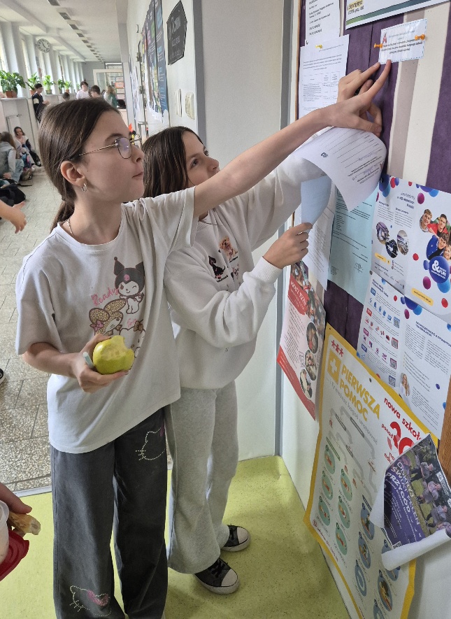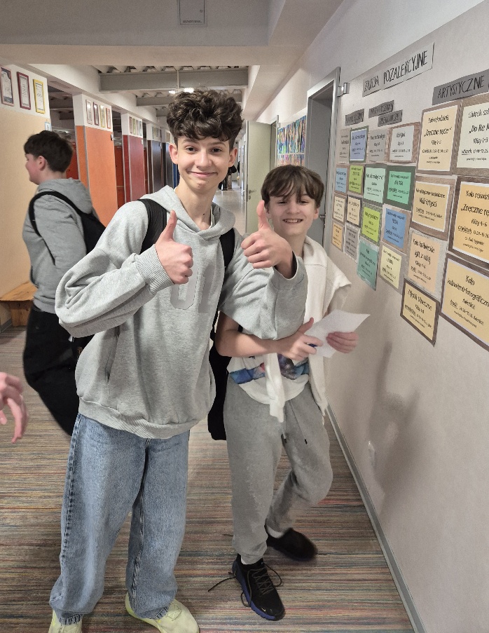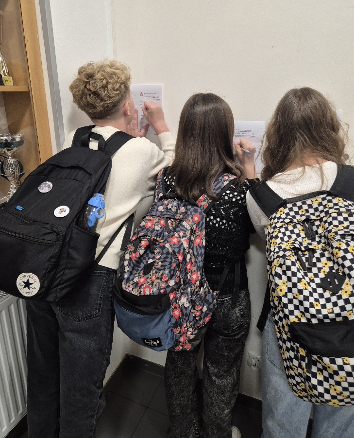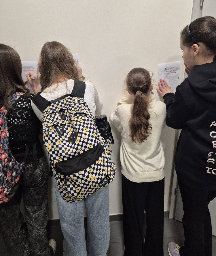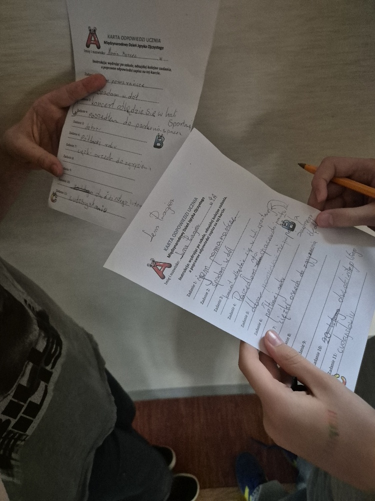 Świetnym wyzwaniem, związanym z tym Dniem, była zabawa w detektywa. Na terenie całej szkoły zostały ukryte zadania z języka polskiego dotyczące poprawnej pisowni wyrazów. Uczniowie z zaangażowaniem przemierzali korytarze, rozwiązując ortograficzne zagadki i sprawdzając swoją polonistyczną wiedzę. Emocji nie brakowało, a wspólna zabawa pokazała, że nauka może być ciekawa i pełna przygód!