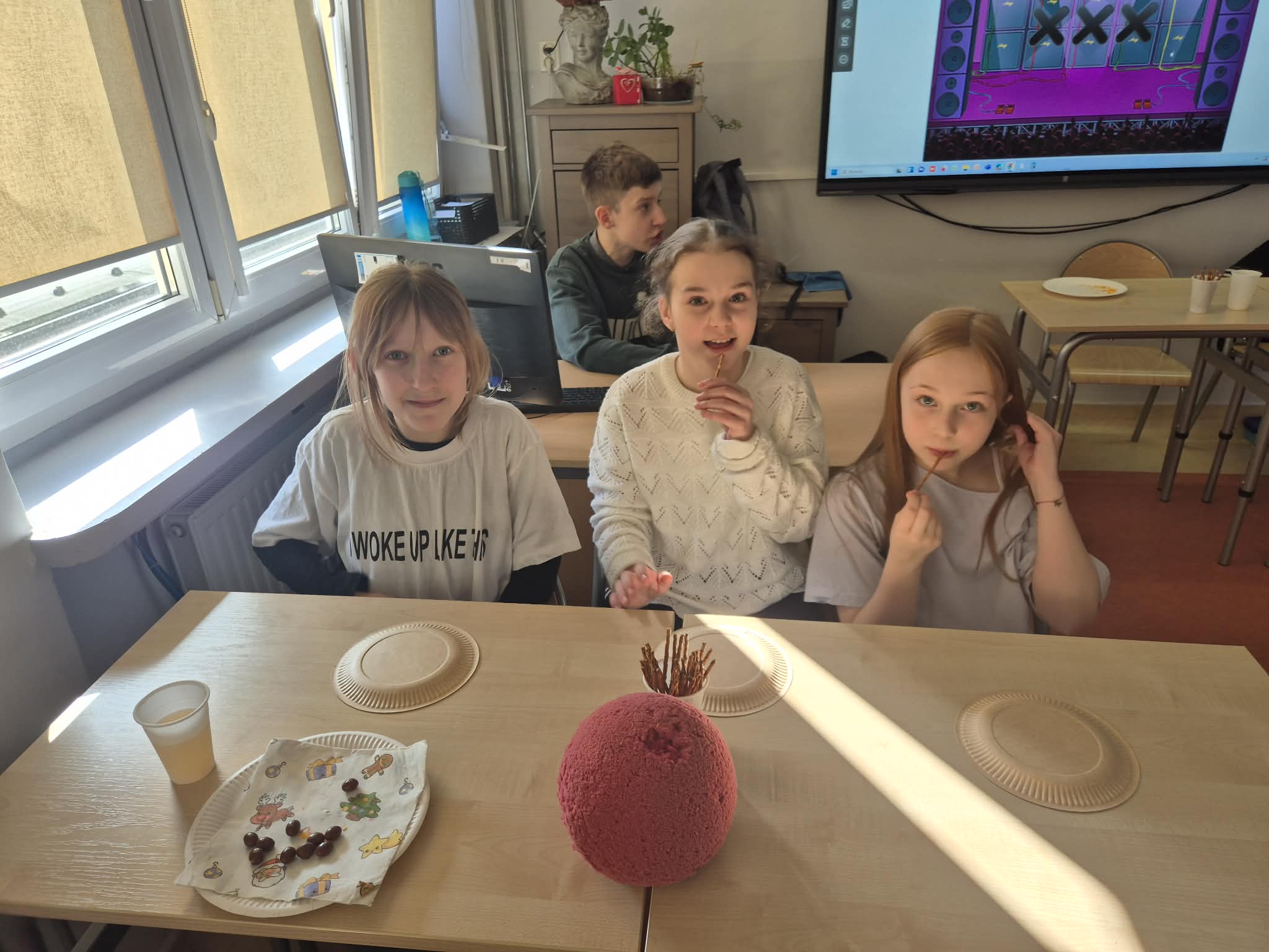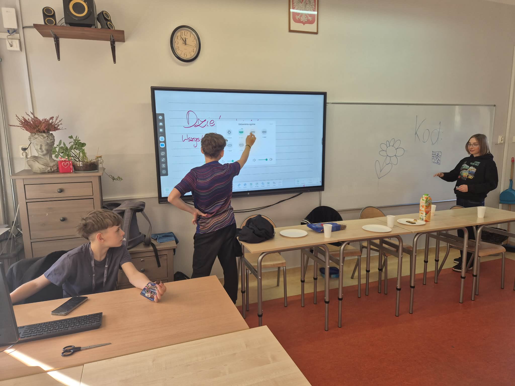 W klasie 6b Dzień Kobiet zapowiadał się dzisiaj nadzwyczajnie. Chłopcy krzątali się po klasie, jakby byli organizatorami wielkiego festiwalu, a dziewczyny z niecierpliwością czekały, co się wydarzy. Gdy weszły, ujrzał naprawdę niesamowite przyjęcie. Na stole znajdowały się przeróżne smakołyki, a chłopcy z dumą ogłosili rozpoczęcie: „Wielkich Zmagań Dnia Kobiet w 6b”. Jedną z konkurencji był quiz na Kahoocie dotyczący… męskich dziedzin! Były więc pytania o różne tajemnicze sprawy, które – według chłopców – każdy powinien znać.