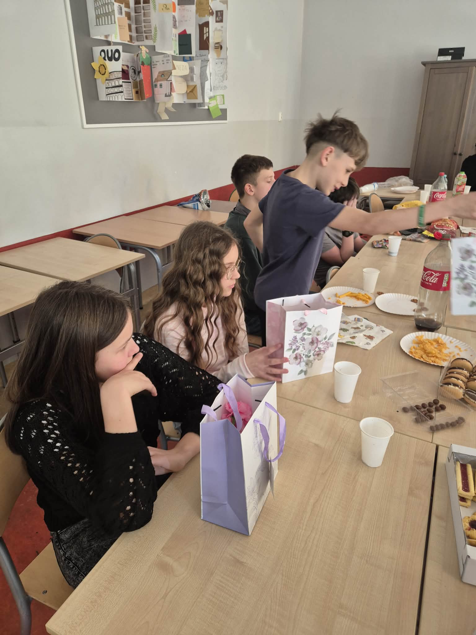 Na koniec chłopcy bez marudzenia posprzątali salę, a wszyscy zgodnie stwierdzili, że Dzień Kobiet w klasie 6b był fantastyczny: pełen śmiechu, zabawy i dobrej atmosfery.