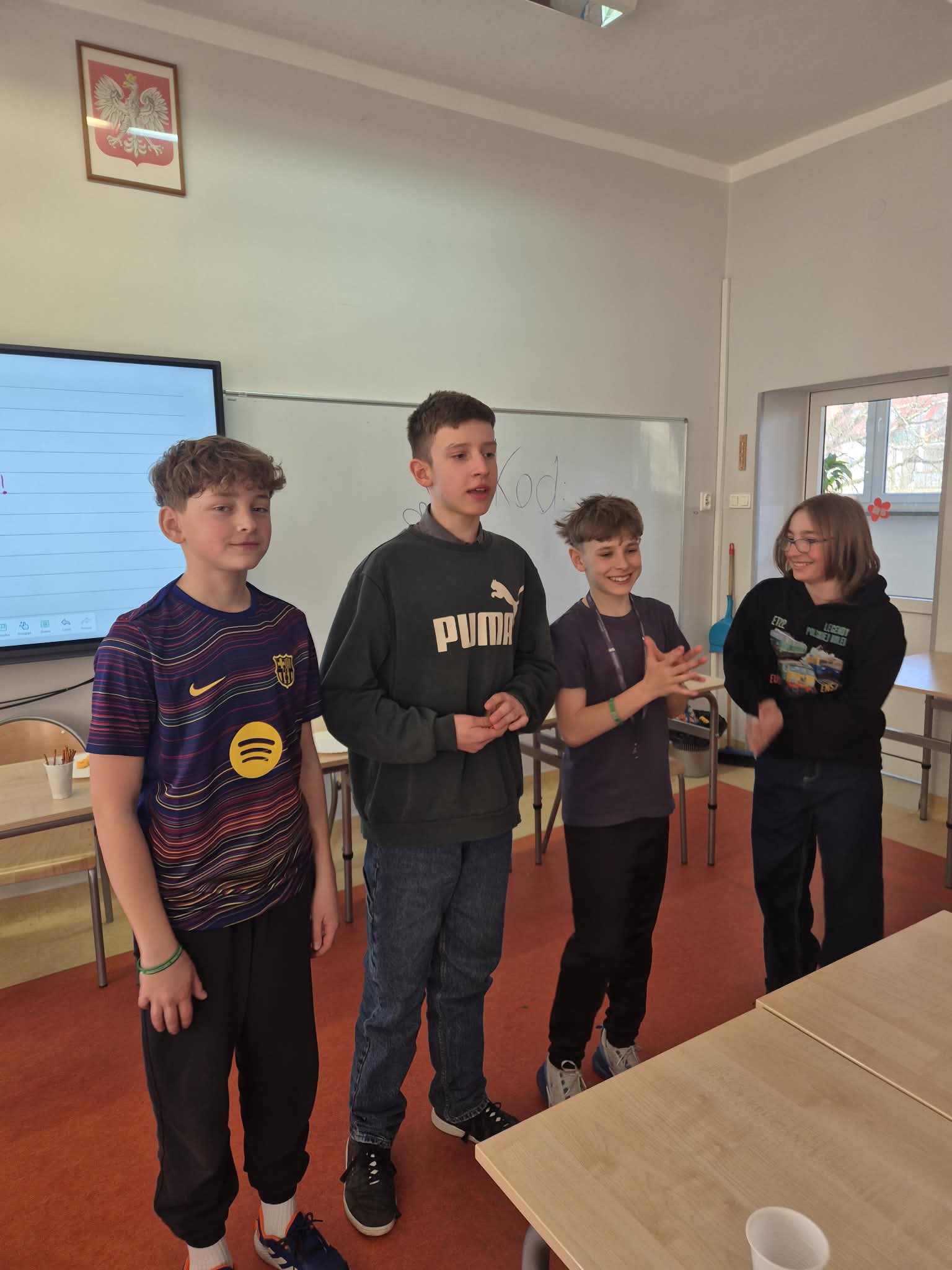 Potem przyszedł czas na talenty w śpiewaniu. Niestety, dziewczęta nie miały ochoty, by prezentować swoje wokalne umiejętności. Za to niektórzy z chłopców podjęli to wyzwanie i w klasie rozbrzmiały piosenki, śmiechy i głośne brawa.