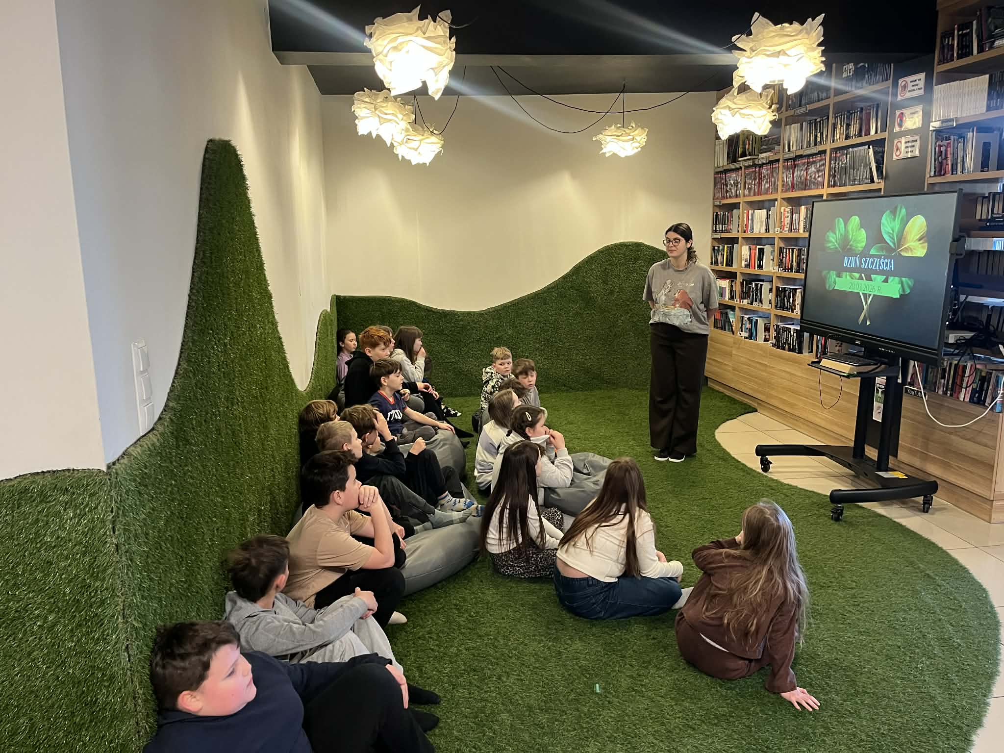 W dniu dzisiejszym klasa 3a uczestniczyła w warsztatach w Miejskiej i Powiatowej Bibliotece Publicznej im. Cypriana Kamila Norwida w Goleniowie. Zajęcia dotyczyły szczęścia, gdyż 20 marca właśnie obchodzimy DZIEŃ SZCZĘŚCIA. Uczniowie wysłuchali bajki, stworzyli klasowe drzewko szczęścia, uczestniczyli w zabawach ruchowych, a także każdy wykonał świątecznego baranka.