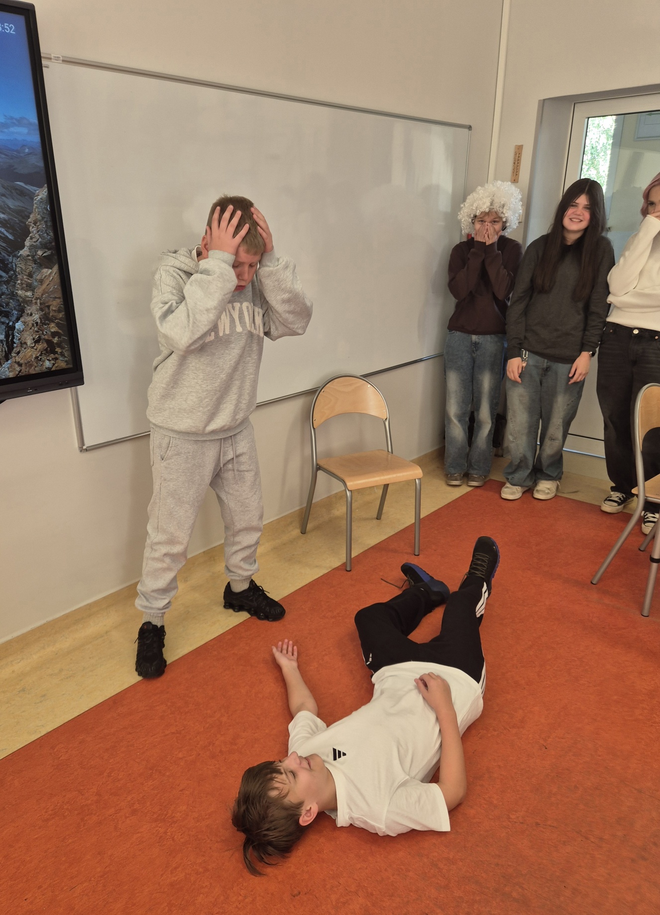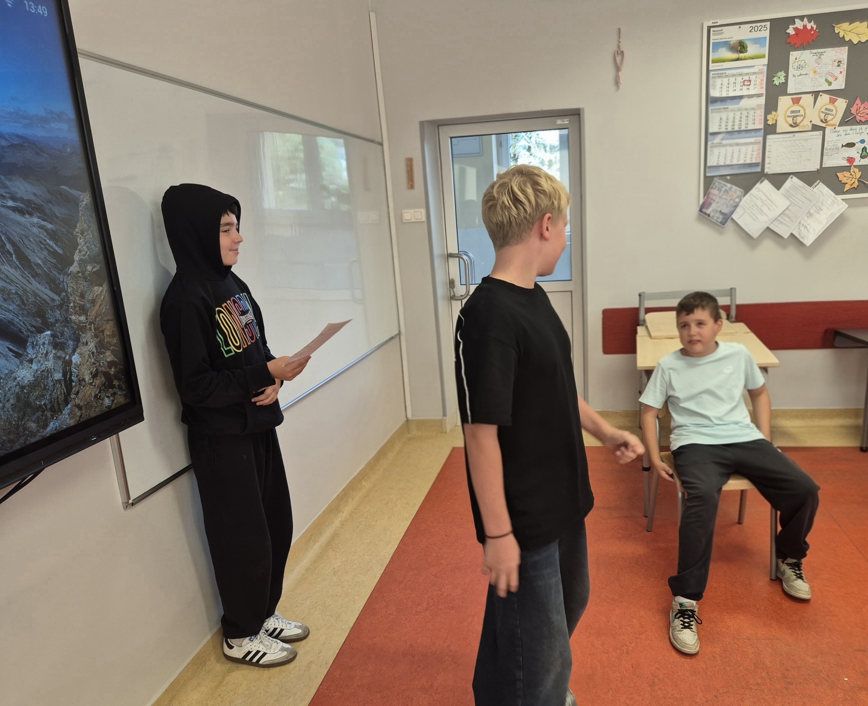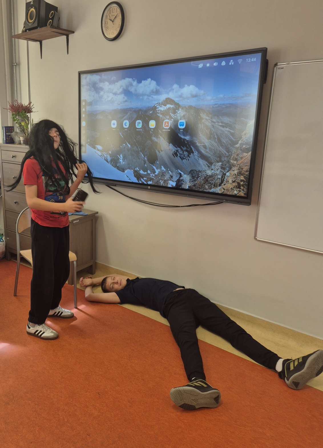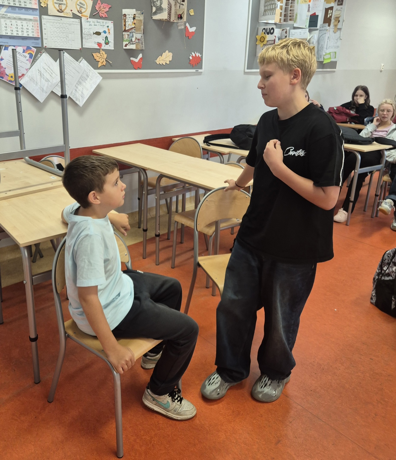 Uczniowie klasy 7a prześcigali się na języku polskim w pomysłowości na scenkę, ukazującą ważne w życiu wartości. A wiadomo, że "... nic nad zdrowie / Ani lepszego, ani droższego", więc głównym tematem miniatur teatralnych był ten cenny dar. Mogliśmy zatem zobaczyć tracącego zdrowie: bogacza, sportowca i ucznia, którzy po fakcie zrozumieli wartość zdrowia oraz to, że po jego utracie nic nie cieszy, ani posiadane bogactwa i przywileje, ani nauka czy sukcesy sportowe.