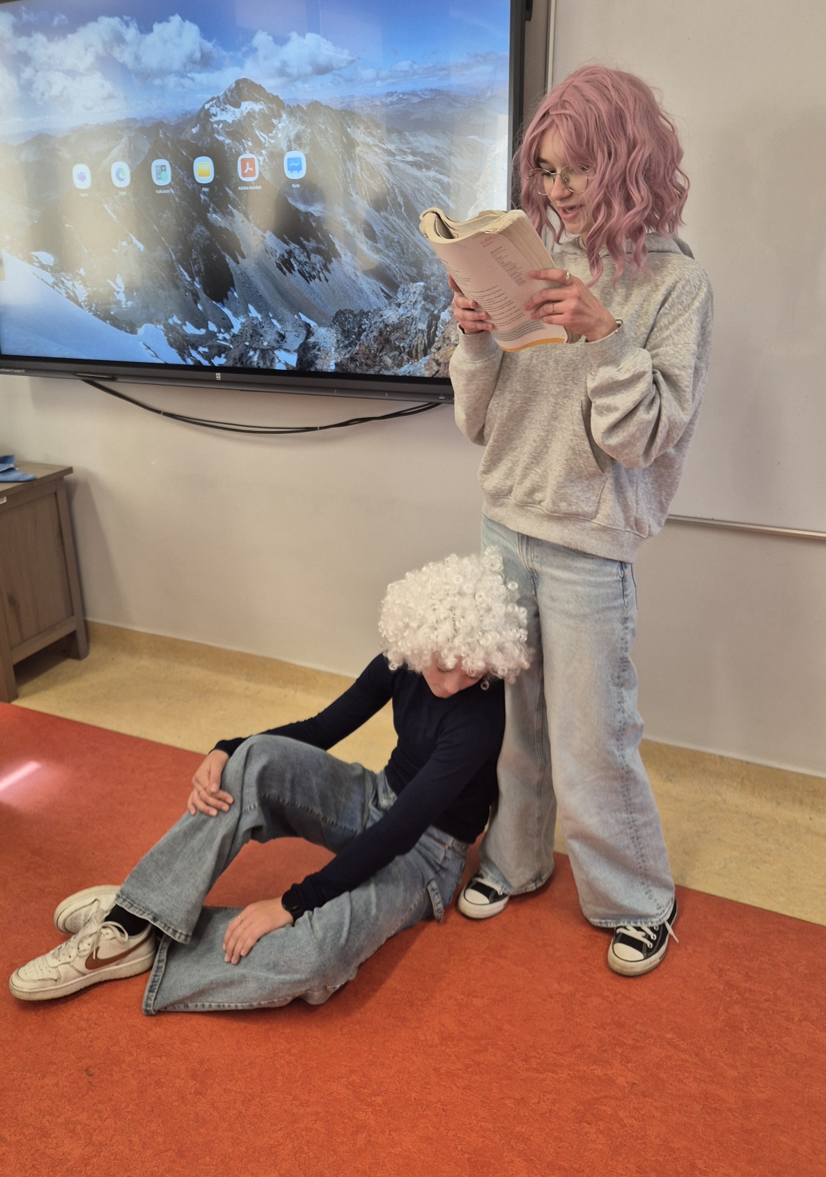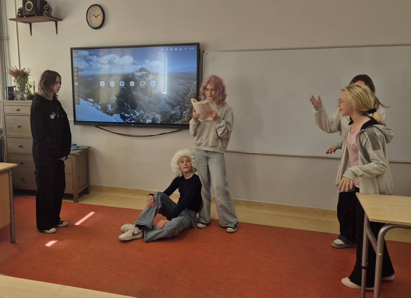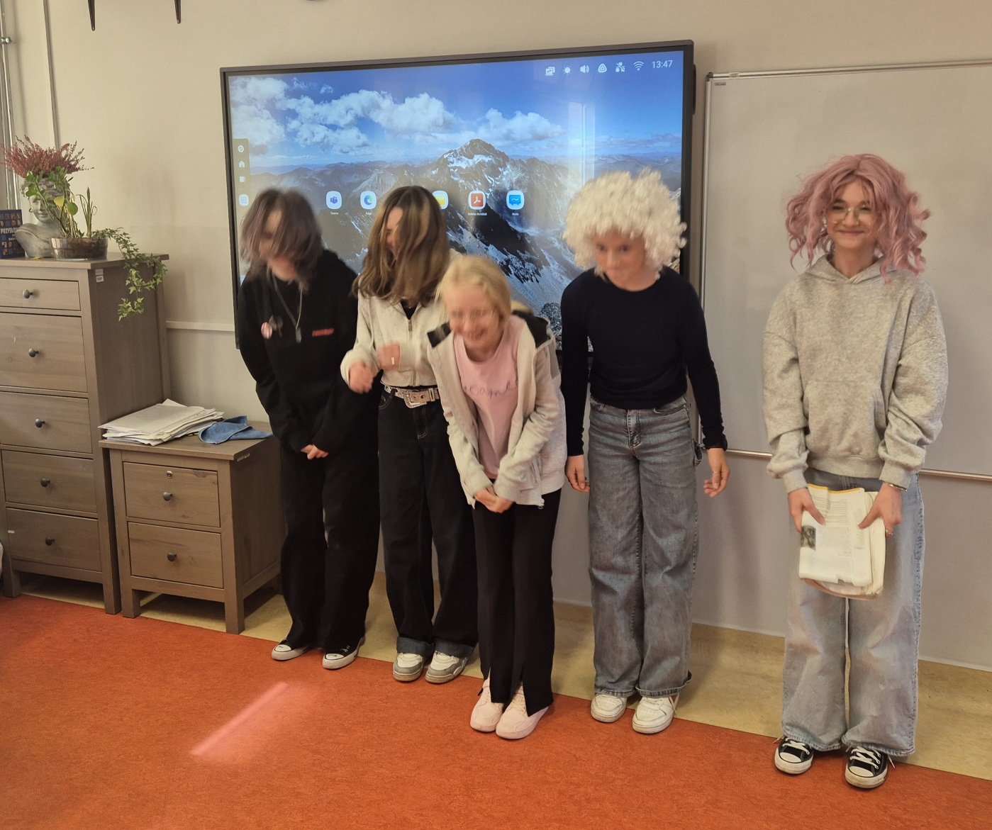 Z kolei jedna z grup przedstawiła fraszkę "Na lipę", a zrobiła to w mistrzowski sposób, posługując się językiem Jana Kochanowskiego, trafnie ukazując zalety drzewa, pod którym poeta spędzał całe dnie, tworząc swoje wspaniałe utwory. Brawo 7a!!!