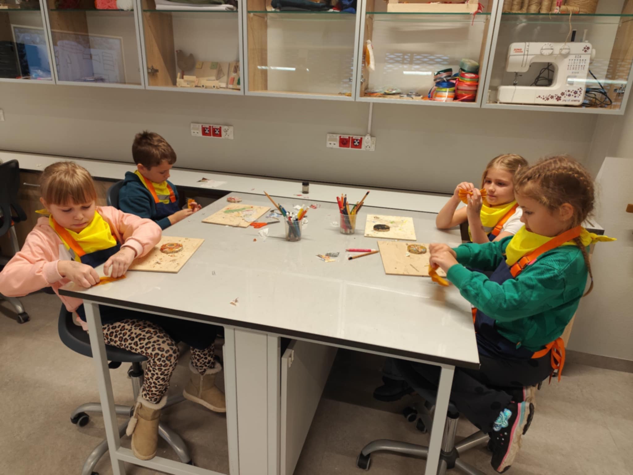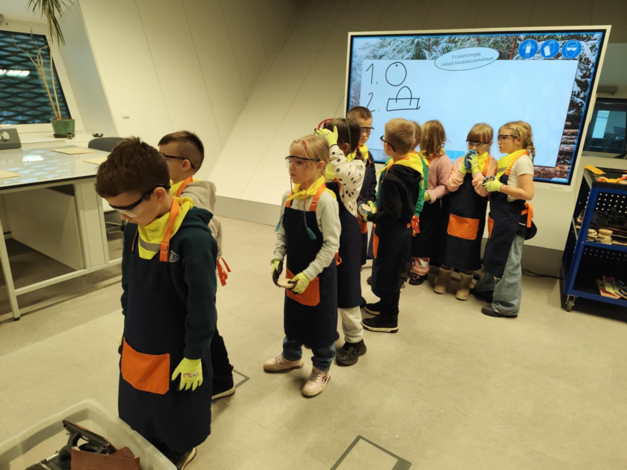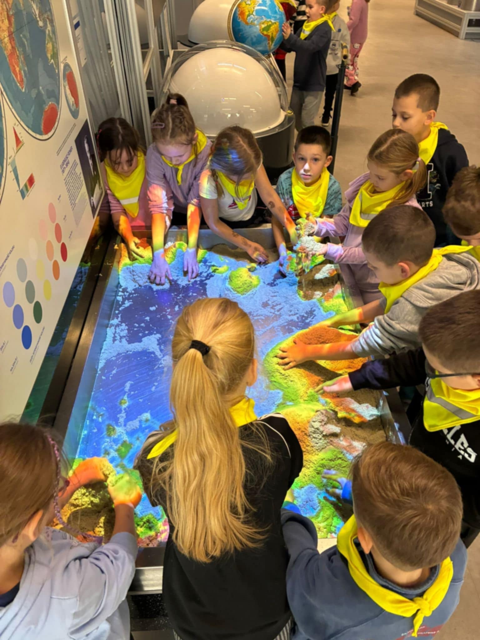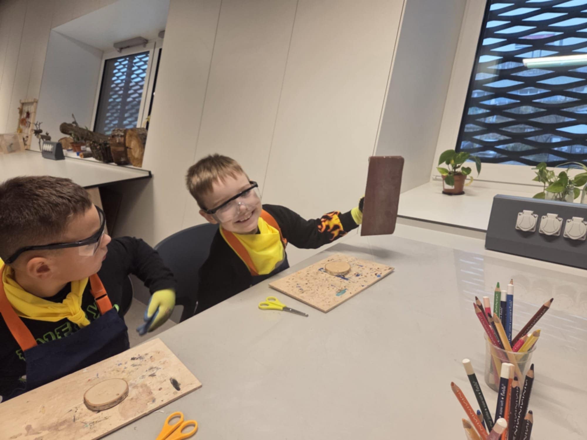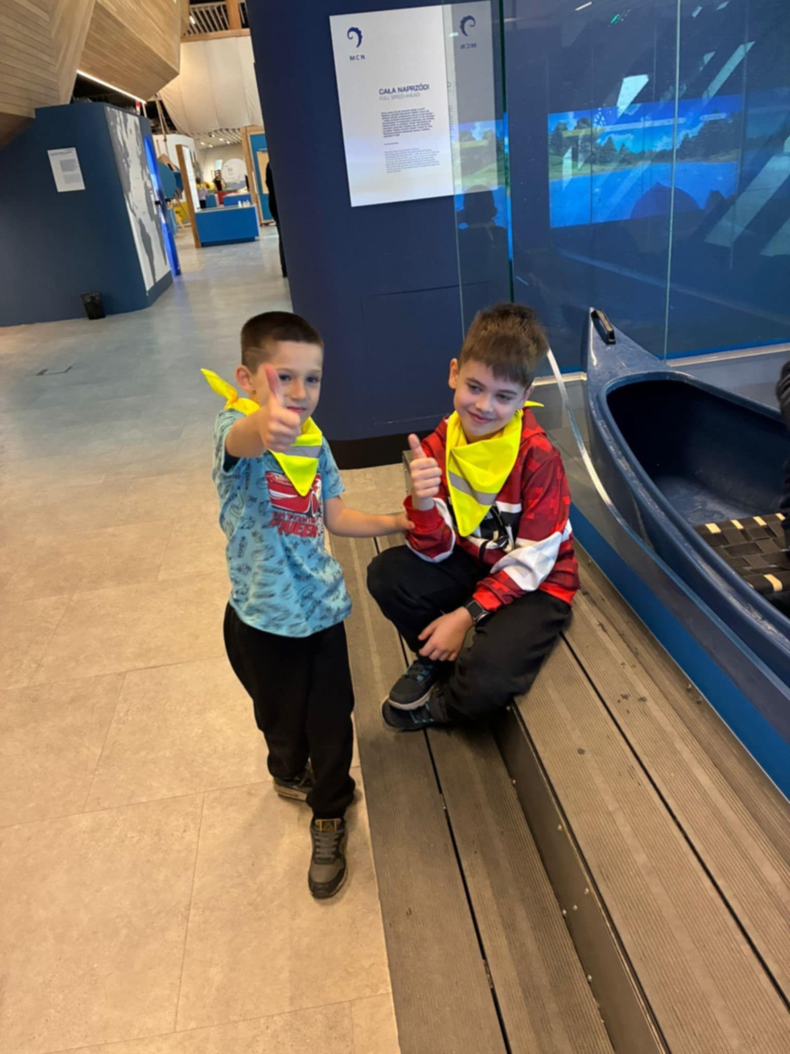 5.12.2025 r. uczniowie klas: 1a i 1b wybrali się na pełną wrażeń wycieczkę do Morskiego Centrum Nauki w Szczecinie, gdzie czekały na nich interaktywne wystawy, morskie ciekawostki i mnóstwo dobrej zabawy. Dzieci z dużym zainteresowaniem i entuzjazmem korzystały z dostępnych stanowisk edukacyjnych, które pozwalały samodzielnie doświadczać i eksperymentować. Pełne aktywności były także warsztaty modelarskie, podczas których uczniowie wykonali piękne drewniane bombki metodą decoupage, dekorując je według własnych pomysłów. Pod czujnym okiem Pań prowadzących dzieci miały nawet okazję wywiercić otwór w plastrze drewna, poćwiczyć szlifowanie i szycie na maszynie. Kreatywna praca sprawiła im ogromną radość, a wykonane ozdoby stały się piękną pamiątką z wyjazdu. Wspólnie spędzony czas dostarczył wielu pozytywnych emocji, a zdobyta wiedza i nowe doświadczenia z pewnością na długo pozostaną w pamięci uczniów.