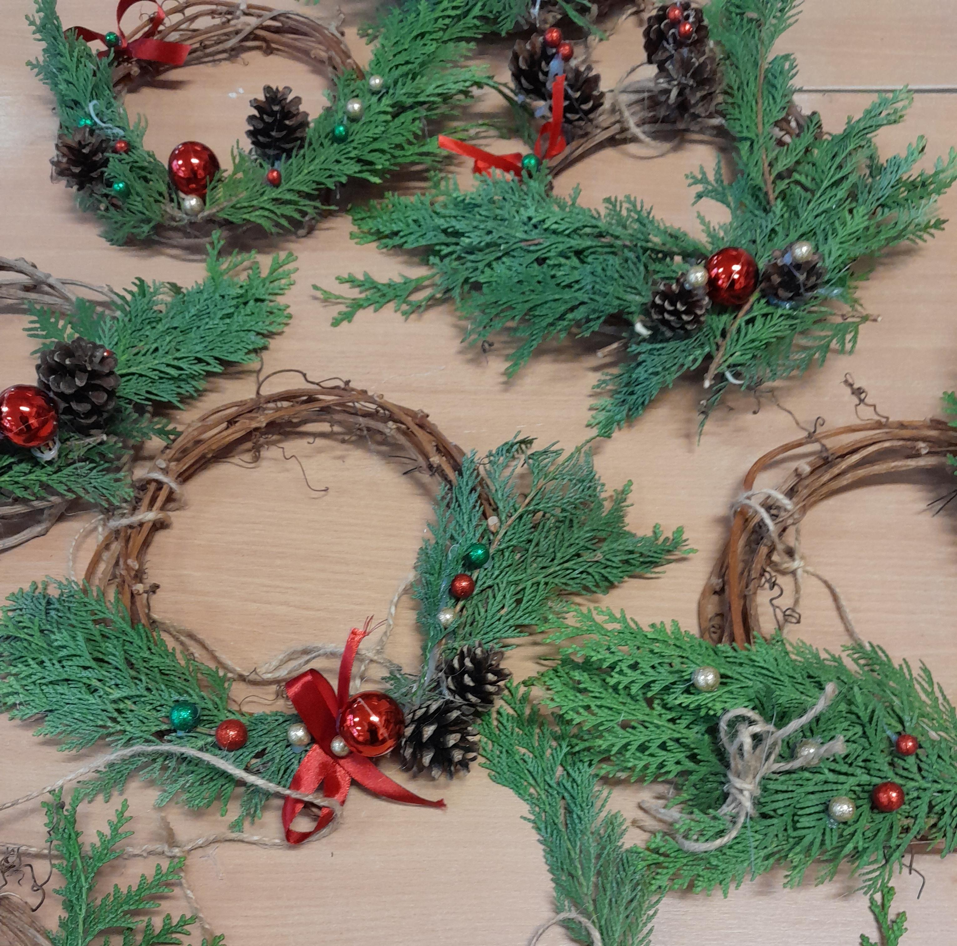 Świąteczne stroiki - praca wykonana przez grupę Mali artyści.