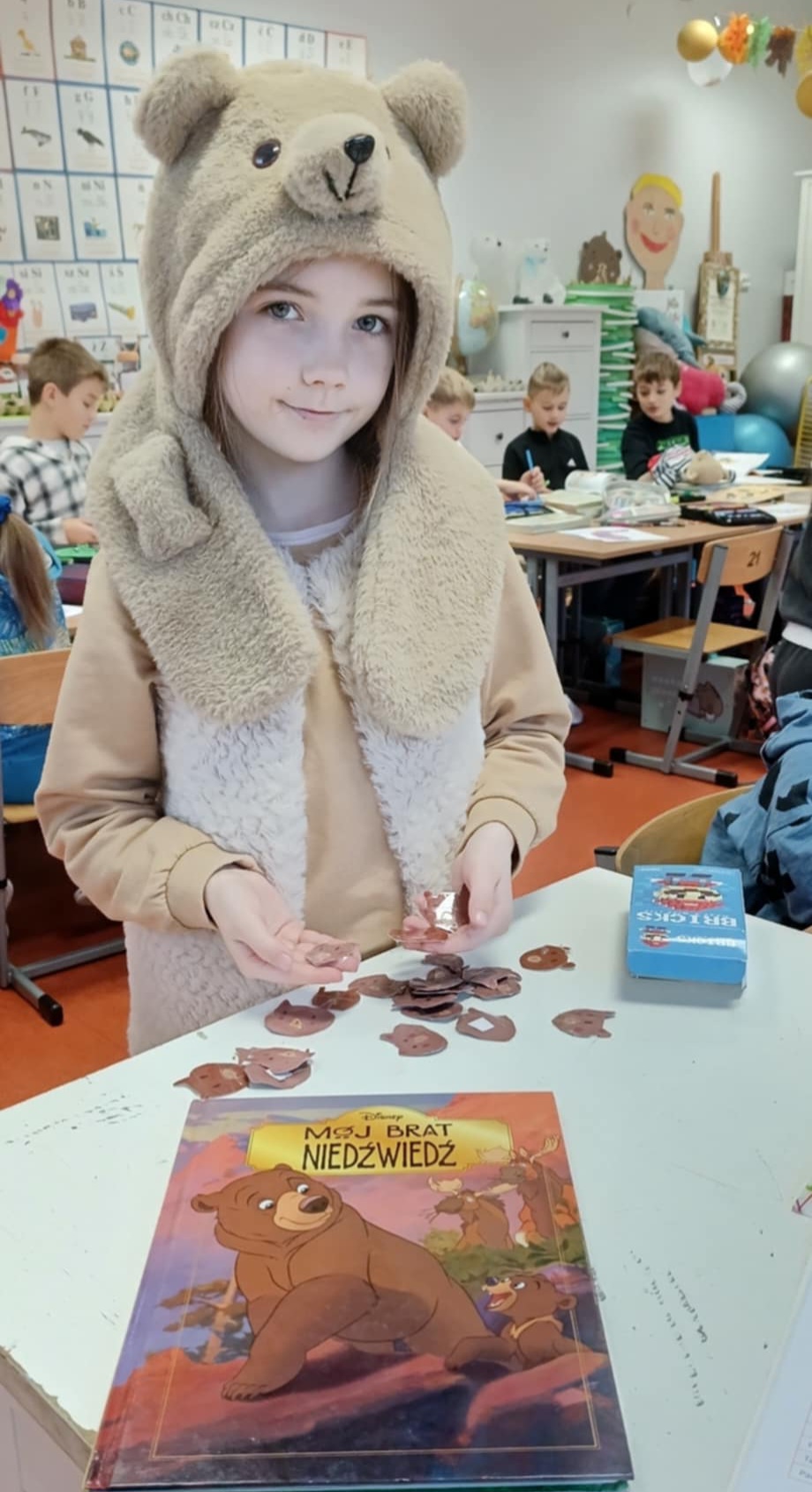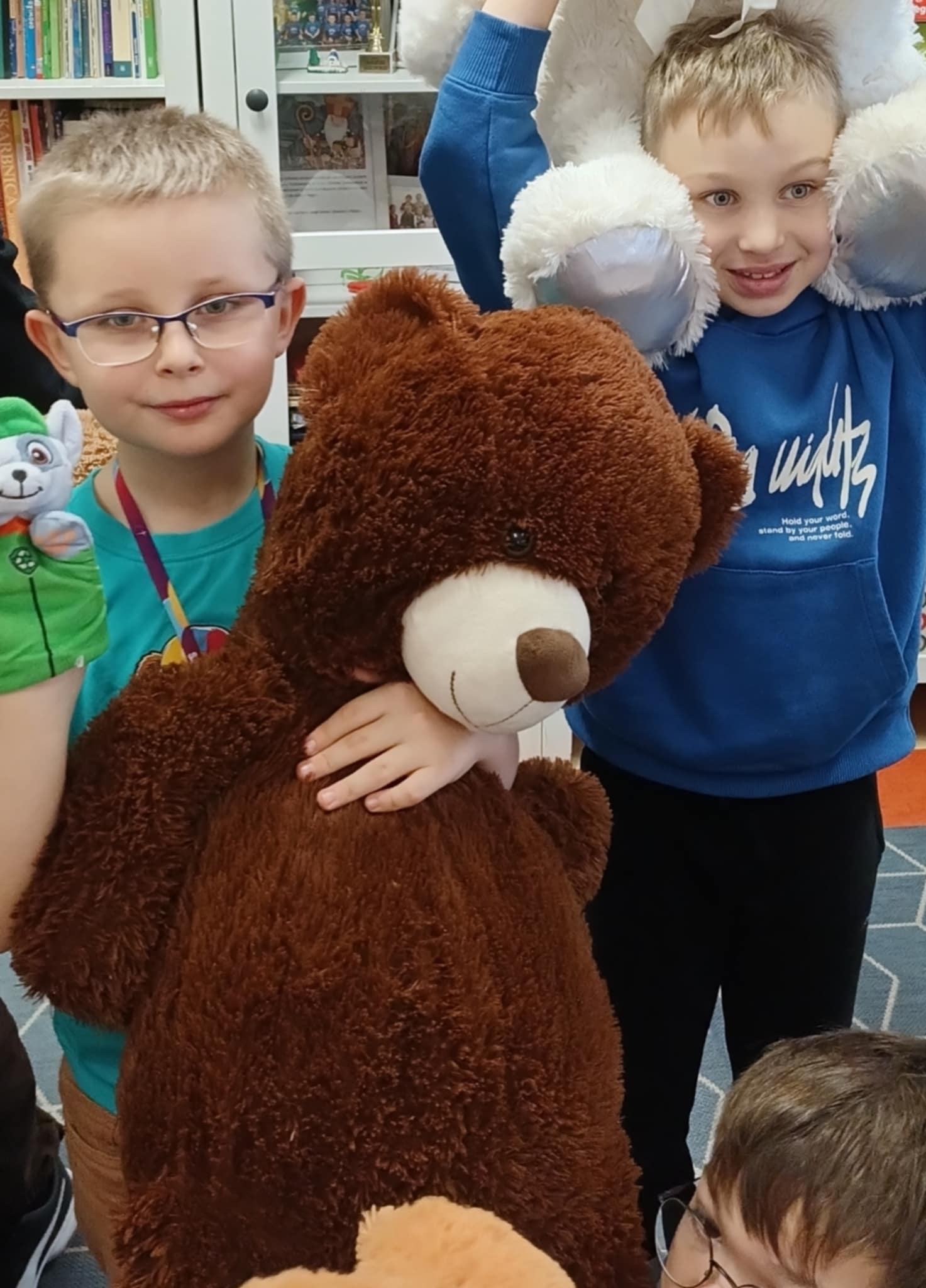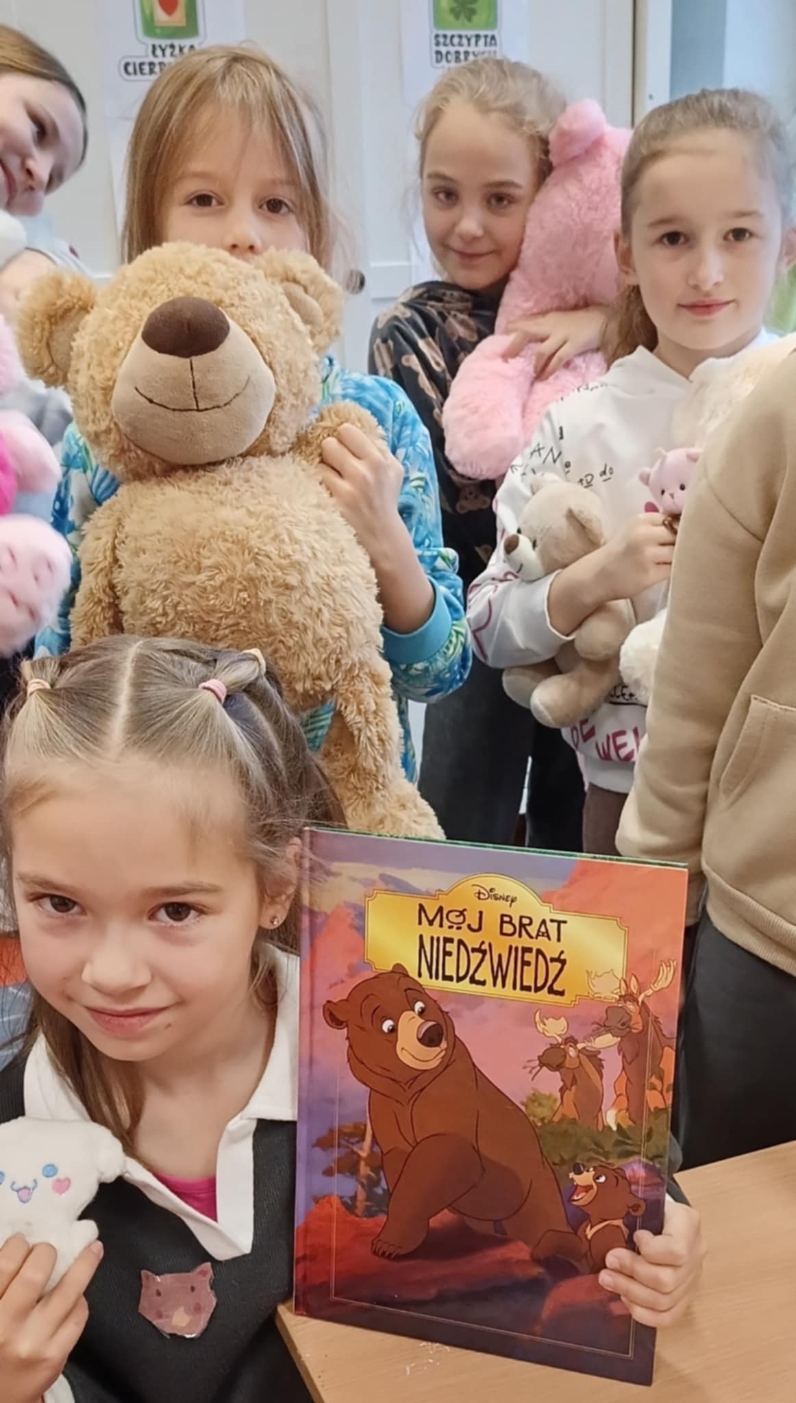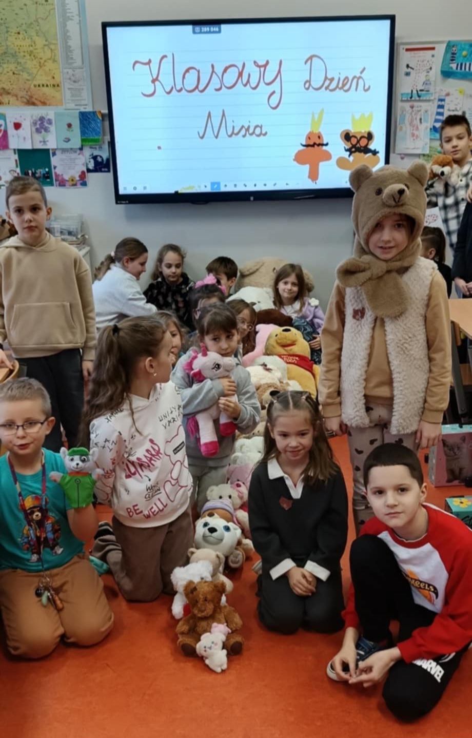 Przyniesione do klasy 25 listopada pluszaki najpierw towarzyszyły dzieciom podczas rozmowy i czytania fragmentów książek o misiach- bohaterach. Potem Misie uczyły przyjaźni i wyzwalały mnóstwo pozytywnych emocji, połączonych z wyczekiwanym misiowym poczęstunkiem. Wykorzystując pojęcie wielkości, dzieci szybko poradziły sobie z zadaniem ułożenia maskotek od największej do najmniejszej. Prawdziwy BOHATER DNIA MISIA to tak naprawdę mały niedźwiadek brunatny, który w 1902 roku uszedł z życiem podczas polowania amerykańskiego prezydenta. Dzieci miały więc kolejne zadanie, w którym samodzielnie, podczas lekcji informatyki, wyszukiwały informacje przyrodnicze i ciekawostki matematyczne o niedźwiedziach brunatnych i największych drapieżnikach lądowych - niedźwiedziach polarnych. Mimo iż pluszowe misie są od lat uwielbiane, to życie prawdziwych dzikich niedźwiedzi już takie słodkie nie jest. Niestety, największym zagrożeniem, jak się okazuje, jest dla tych pięknych zwierząt sam człowiek. Sympatyczny Dzień Misia wyzwolił w dzieciach z 2b wiele empatii i ogromny szacunek dla tych przedstawicieli świata przyrody.