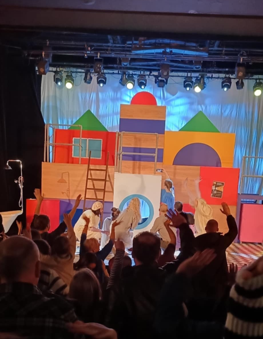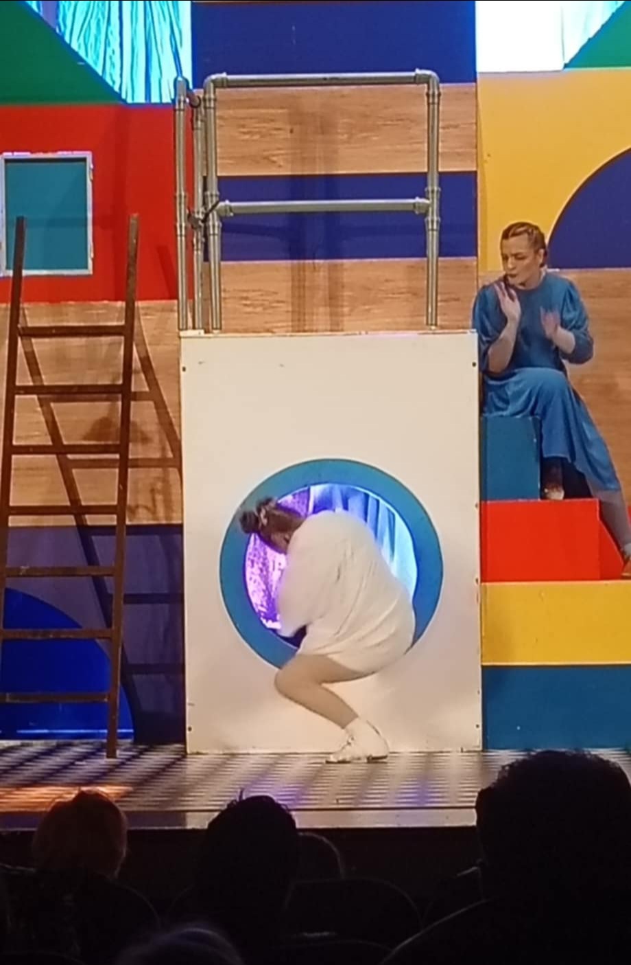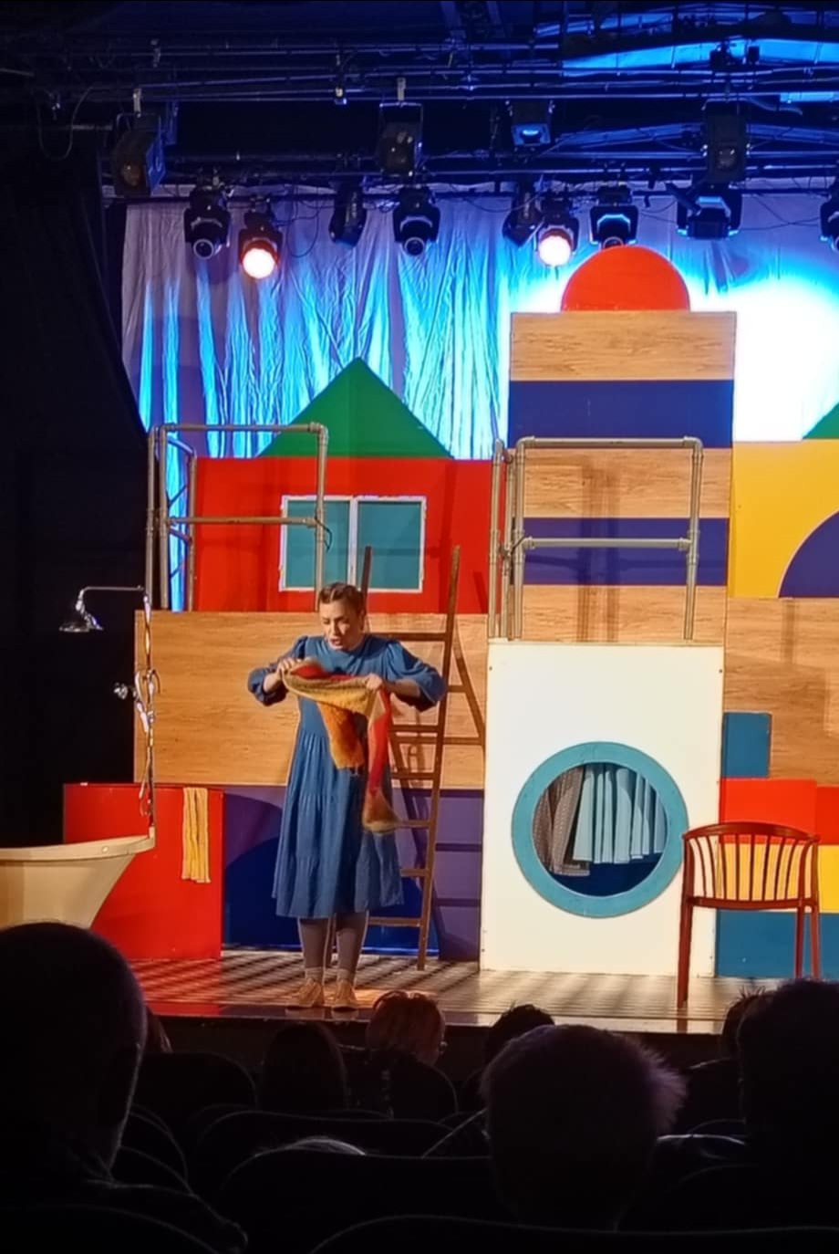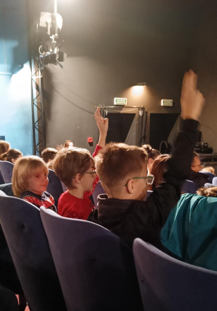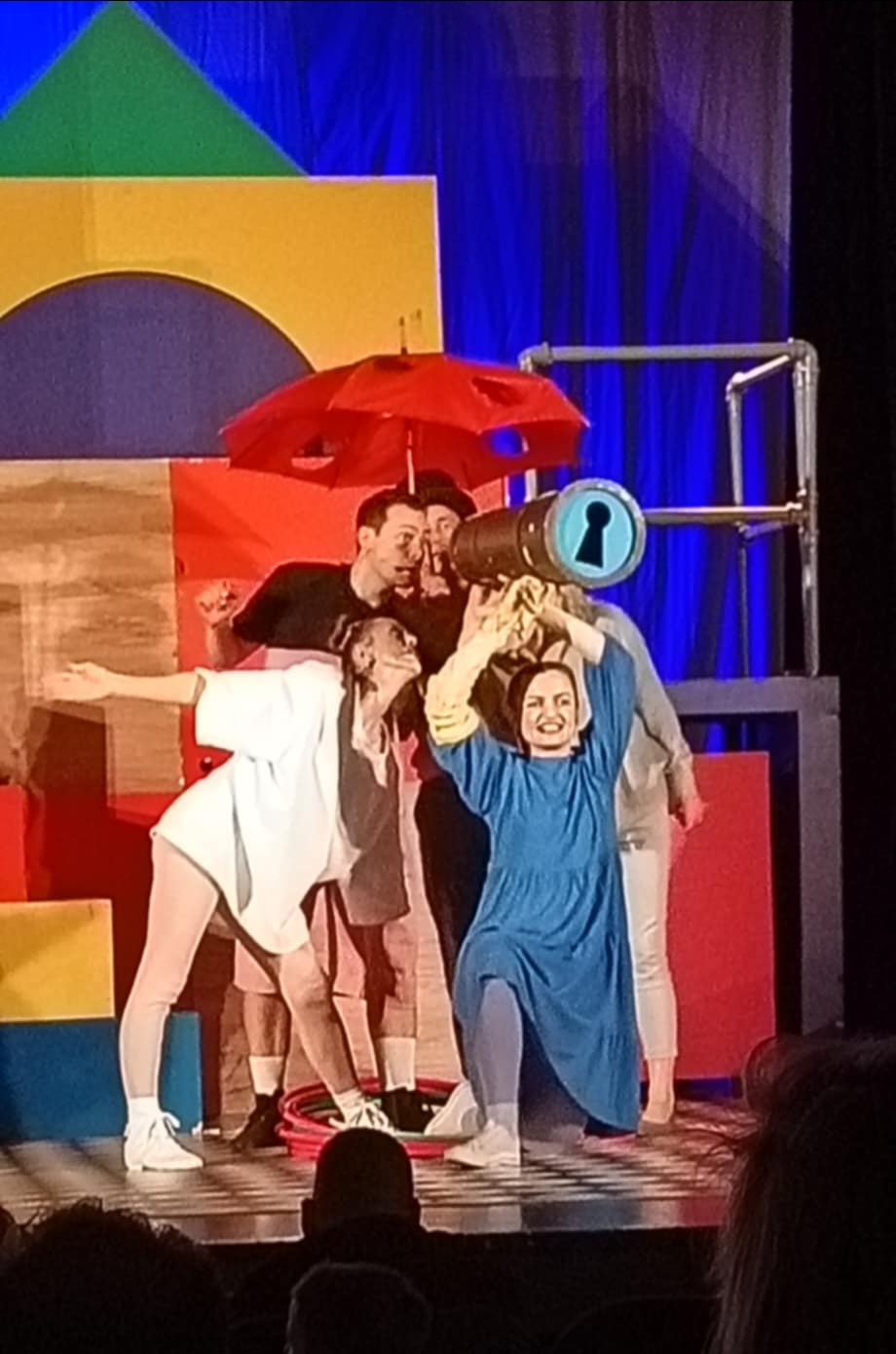 "Niesamowite przygody dziesięciu skarpetek". Ponad 1,5- godziną sztukę uczniowie śledzili z uwagą, porównując treść książki z kolejnymi przygodami już poznanych oraz dwóch nowych skarpetek. Gra aktorów, kontakt z publicznością, pomysłowa scenografia czy muzyka przygotowane zostały na najwyższym poziomie.