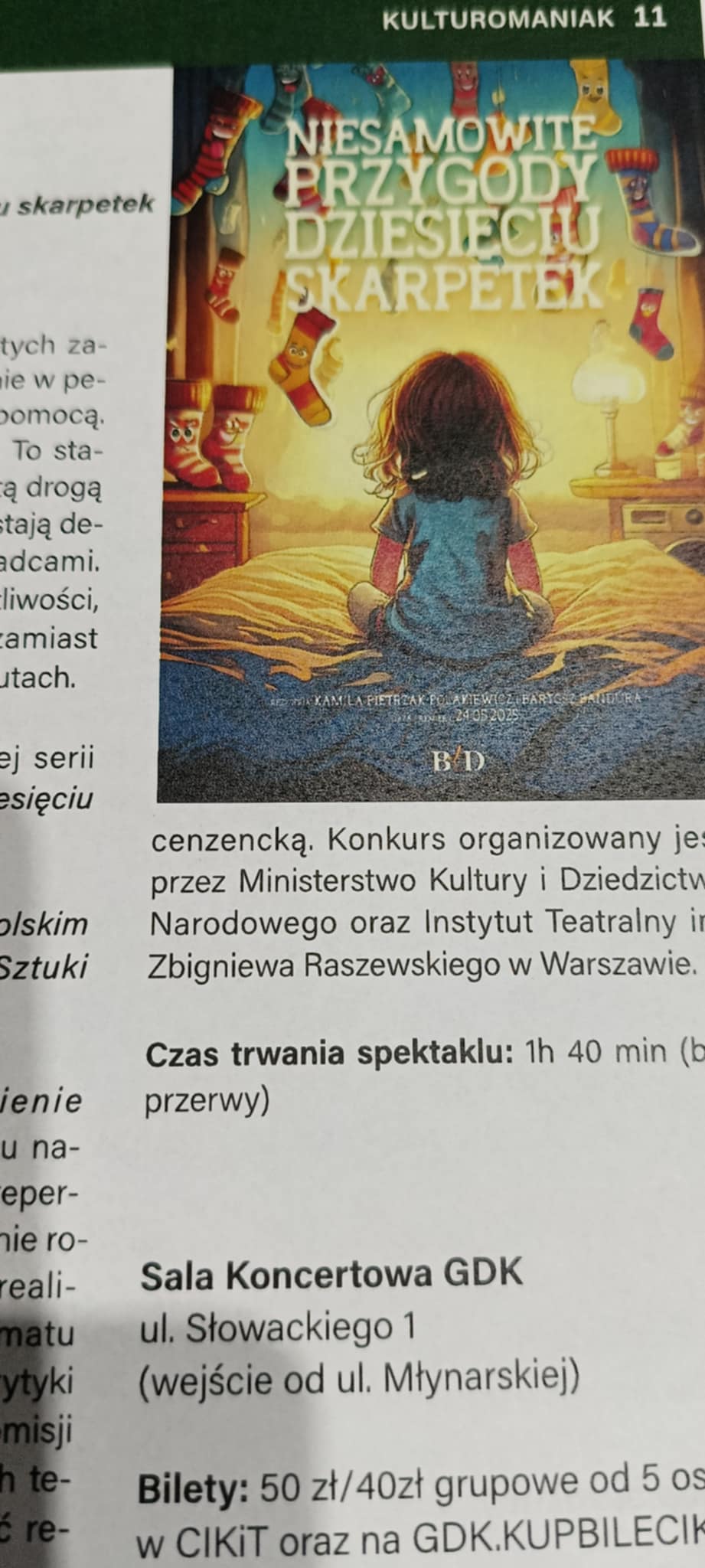 W niedzielę dzieci z klasy 2b wraz ze swoimi rodzicami i rodzeństwem przeżyły dosłownie "Niesamowite przygody dziesięciu skarpetek", które w grudniowy wieczór zawitały do sali koncertowej GDK-u za sprawą Bałtyckiego Teatru Dramatycznego oraz Ogólnopolskiego Konkursu na Wystawienie Polskiej Sztuki Współczesnej, organizowanego poraz 32. przez Ministerstwo Kultury i Dziedzictwa Narodowego i Instytut Teatralny w Warszawie. Informację o spektaklu na podstawie bestsellerowej serii Justyny Bednarek o "niesparowanych skarpetkach" dzieci z 2b przyjęły z niedowierzaniem i zarazem z entuzjazmem, gdyż dosłownie miesiąc wcześniej przeczytały i omówiły lekturę