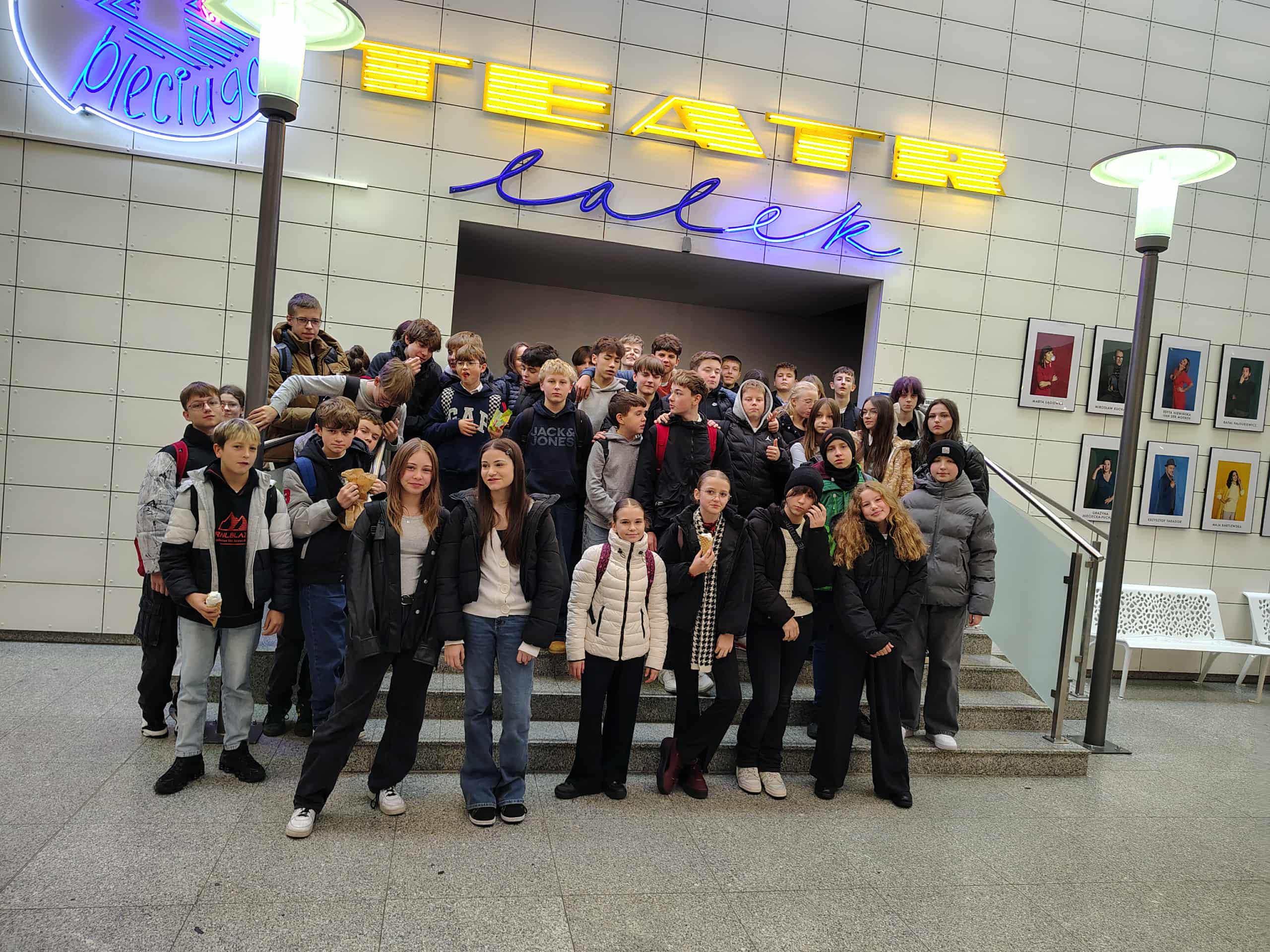 Klasy: 7a, 7b, 8a, 8b oraz część 6b 14 listopada obejrzały w Teatrze Lalek "Pleciuga" w Szczecinie życiowy spektakl, wystawiony na podstawie książki Gordona Kormana "Nienauczalni". Głównymi bohaterami są niepokorni uczniowie oraz obojętny i zgorzkniały profesor, który marzy tylko o emeryturze, a na pewno nie o tym, by na rok przed nią uczyć tzw. „nienauczalnych”, czyli klasę szkolnych wyrzutów. Lecz jak to w życiu bywa, z czasem buntownicy i stary profesor zaprzyjaźniają się, a nawet zdają wspaniale egzamin, czym zadziwiają szkolną społeczność i konserwatywną dyrektorkę, która już dawno spisała Nienauczalnych na straty.