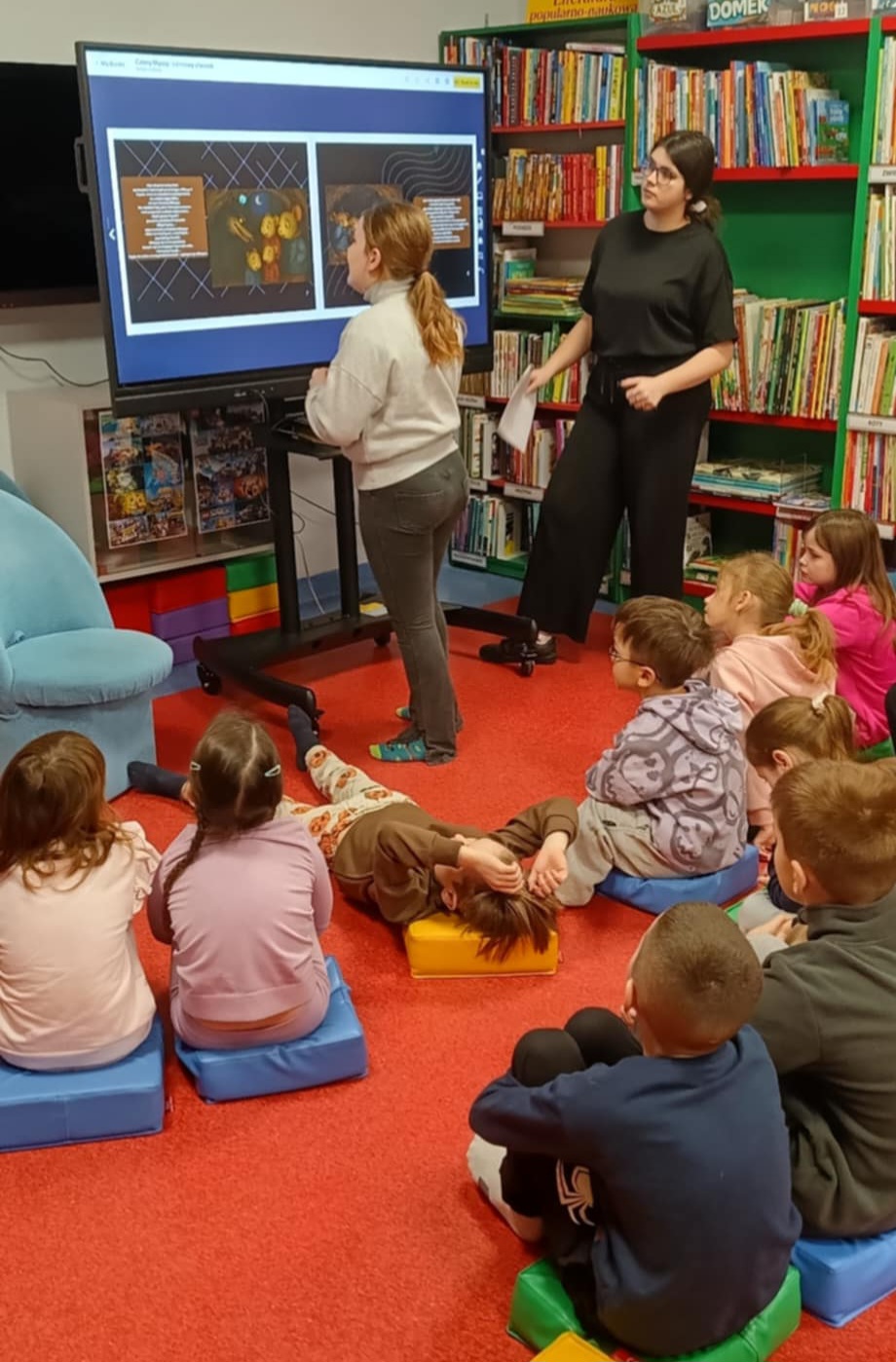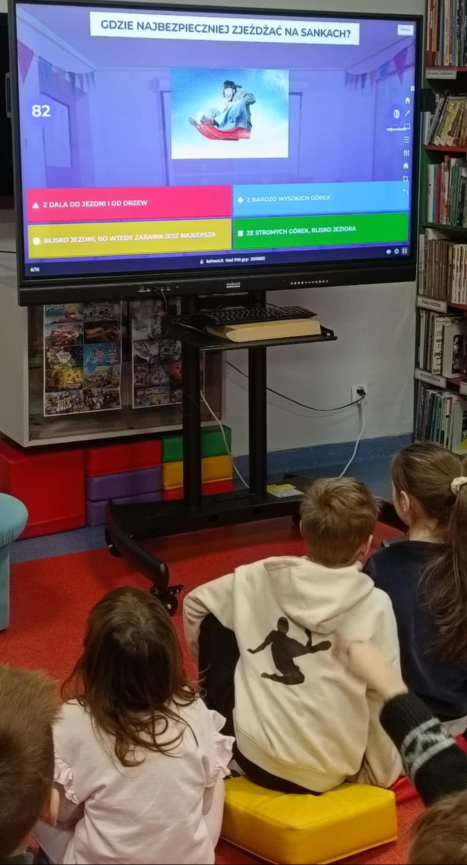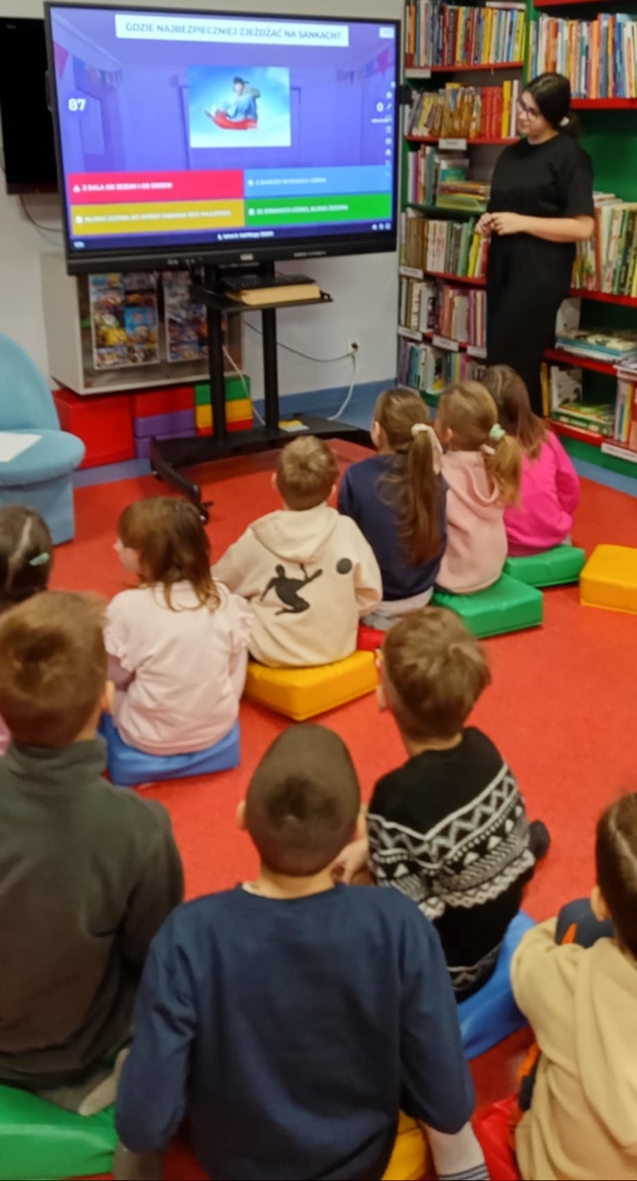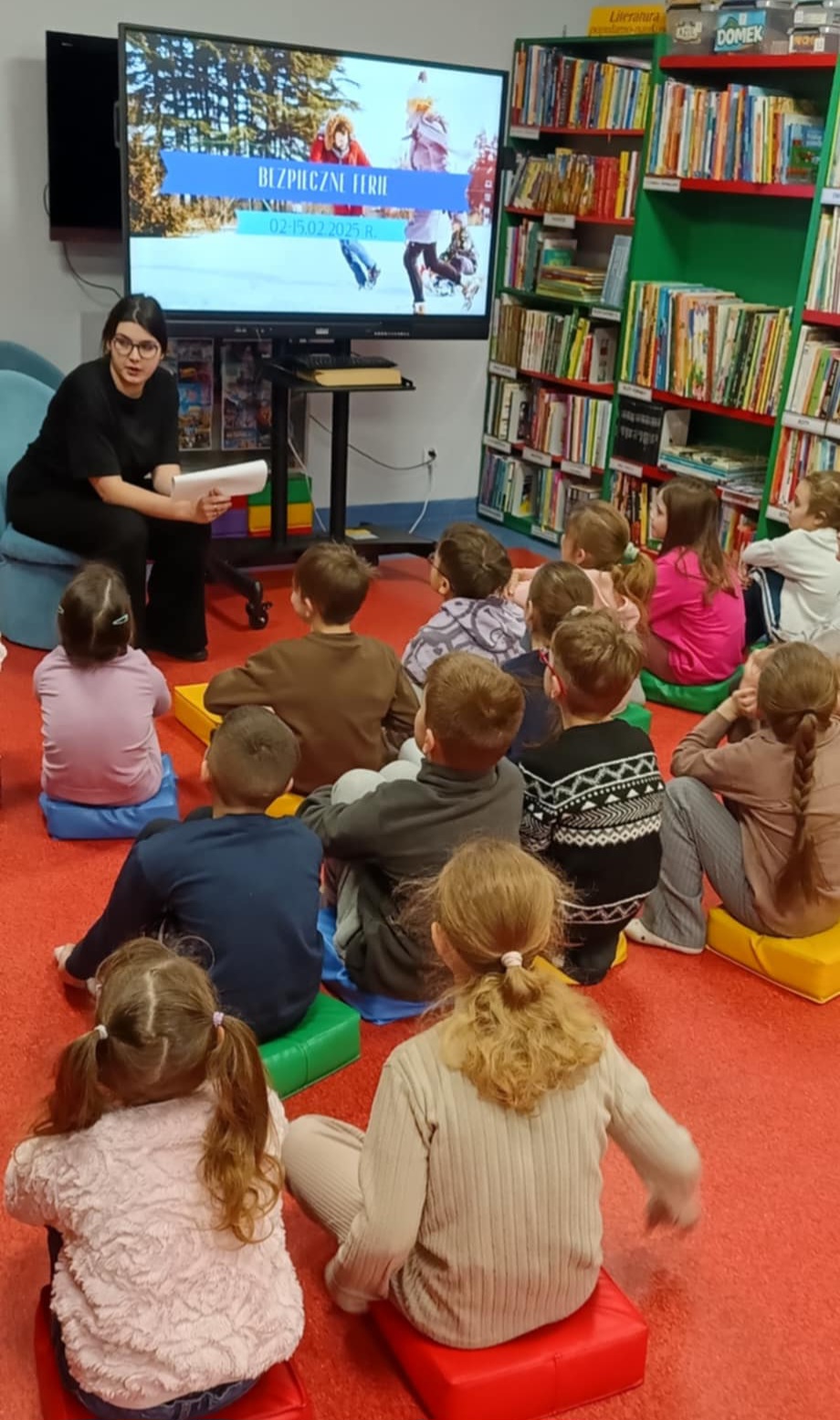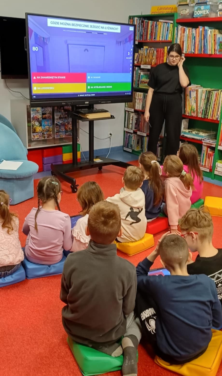 Niebawem ferie. Klasa 2b otrzymała zaproszenie do zaprzyjaźnionego działu dziecięcego w Miejskiej i Powiatowej Bibliotece Publicznej w Goleniowie na spotkanie na temat "Bezpiecznych ferii". Interaktywne i, jak zawsze, ciekawe zajęcia- poprowadziła pani Nikola. Dzieci najpierw przeczytały bajkę, następnie obejrzały prezentację o zimowych niebezpieczeństwach, po której nastąpił quiz sprawdzający znajomość właściwych zachowań i zasad.