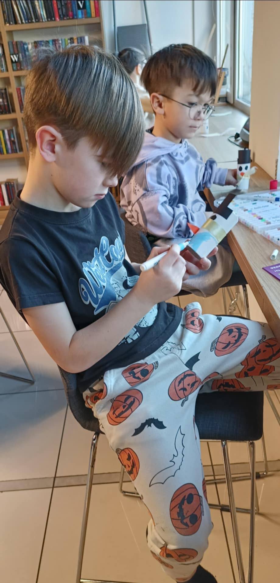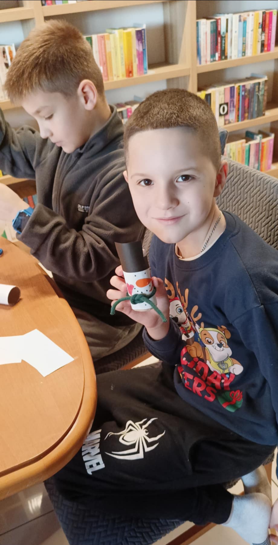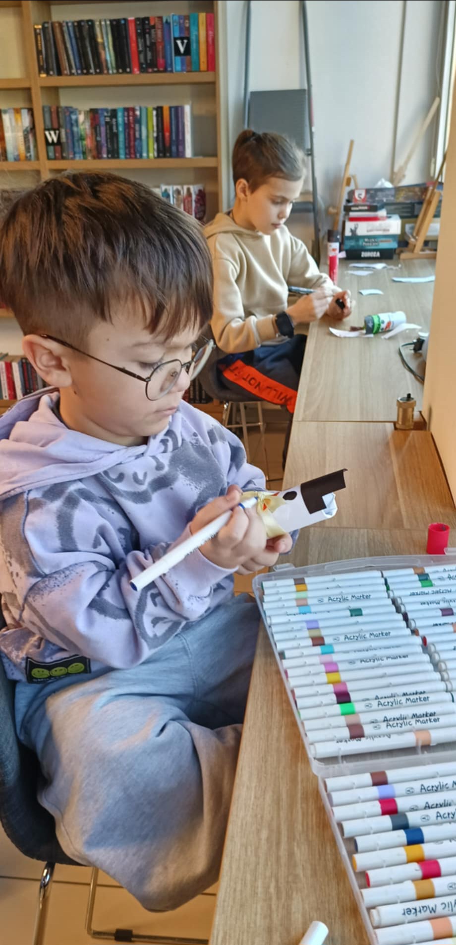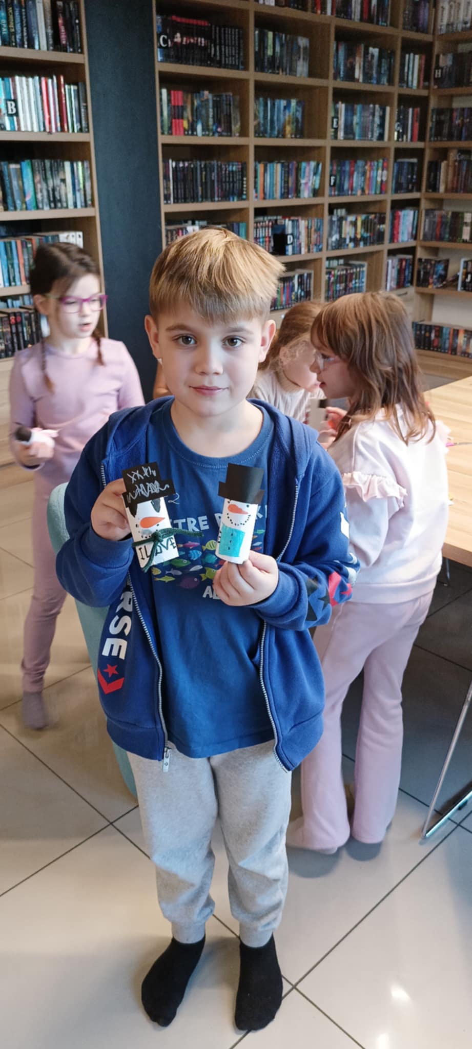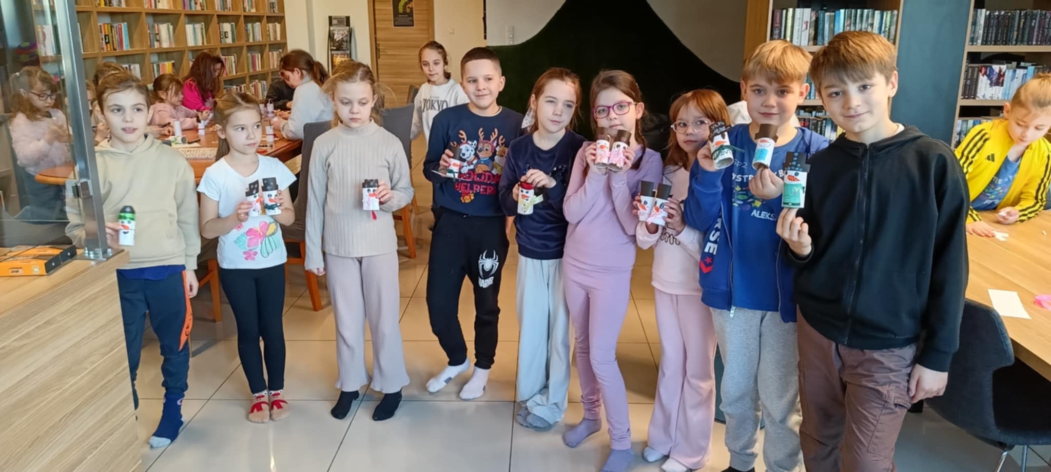W 2. części spotkania, przygotowanej przez panią Julitę, czekała na dzieci, w sali dla młodzieży, artystyczna niespodzianka. Gdy zasiadły przy stołach, z dużym zaangażowaniem, wykonały urocze bałwanki. Po takich wspaniałych warsztatach wszyscy wsiedli z radością do pociągu, który wyruszył w bezpieczną podróż na ferie.