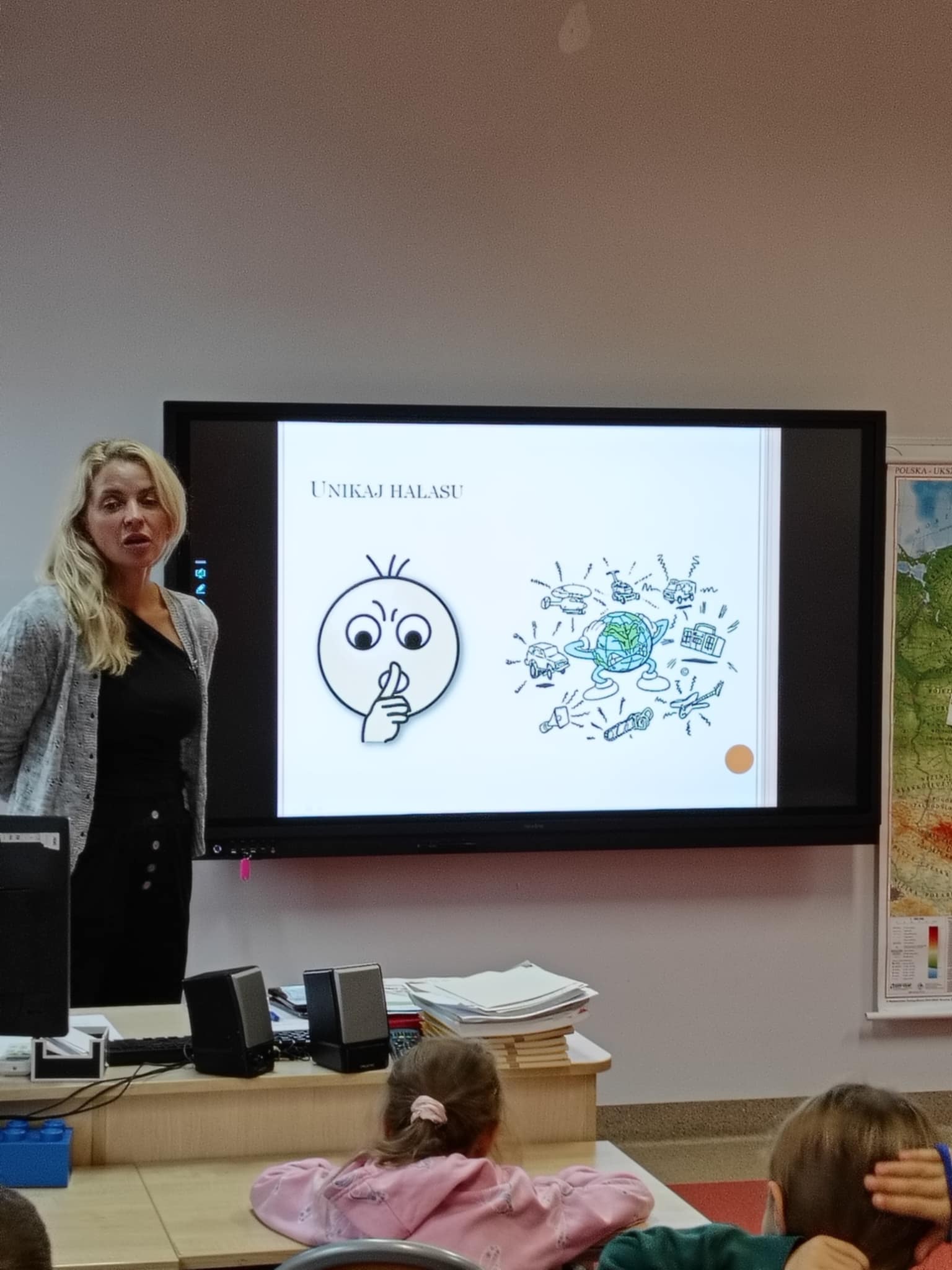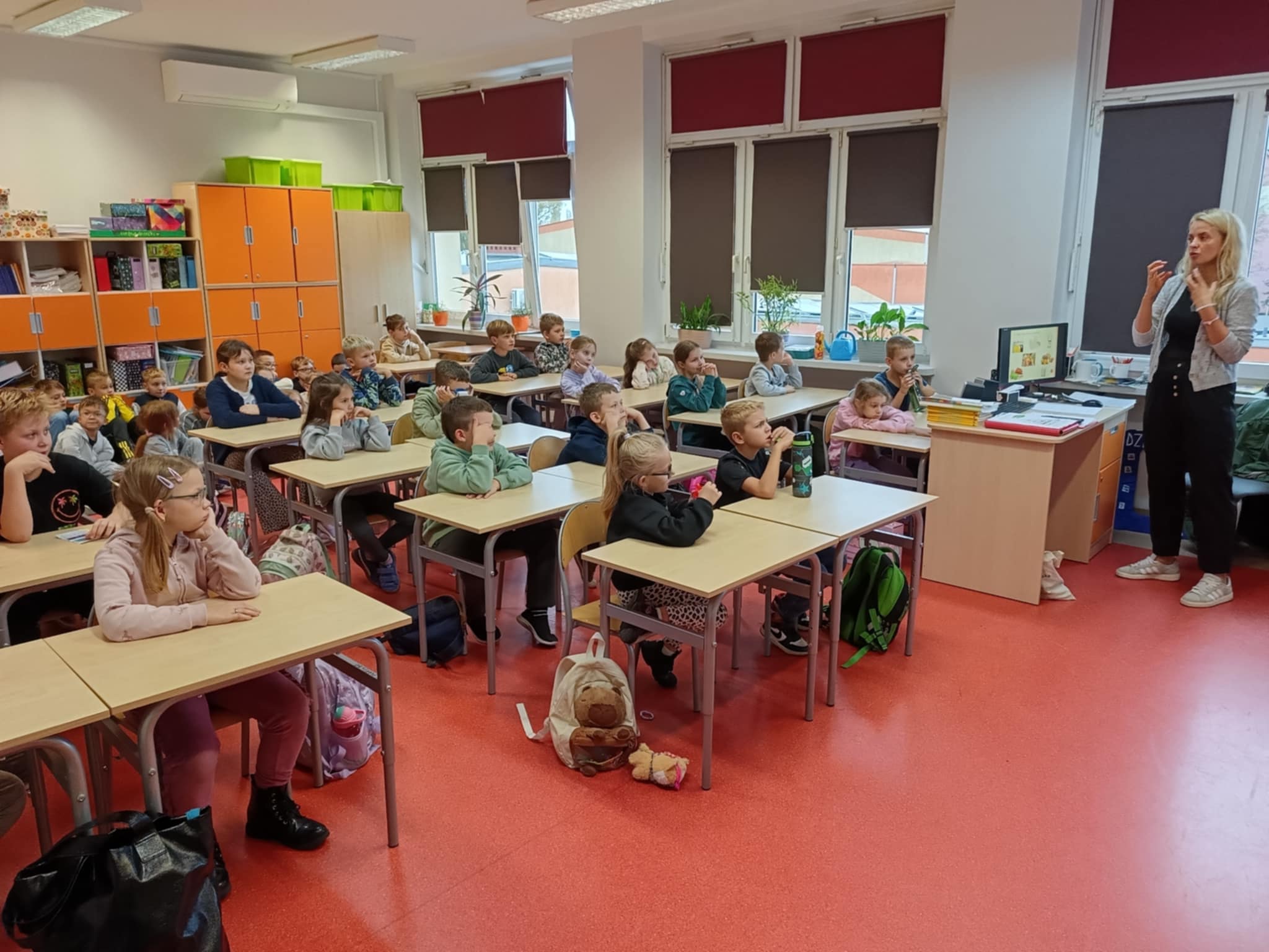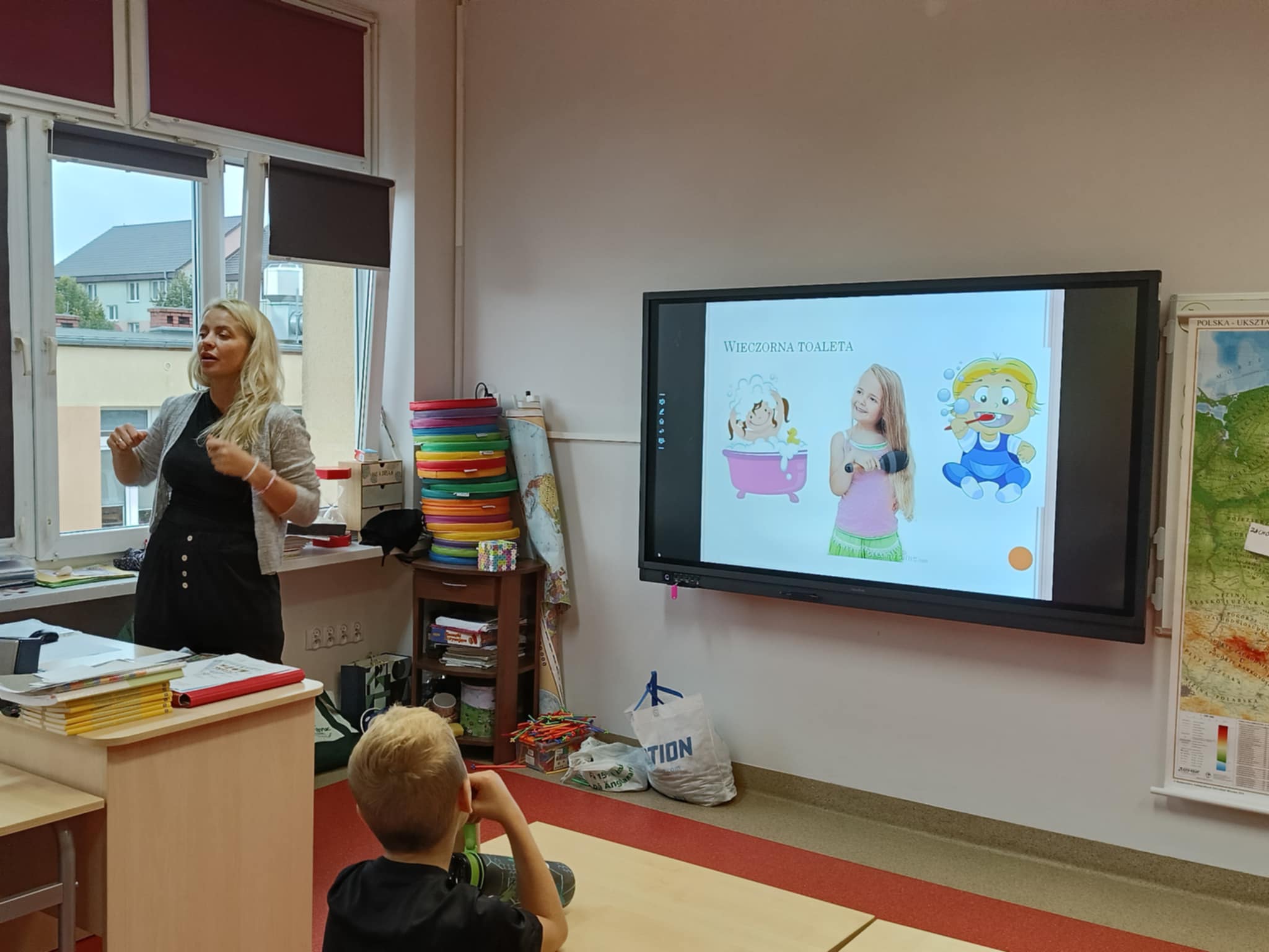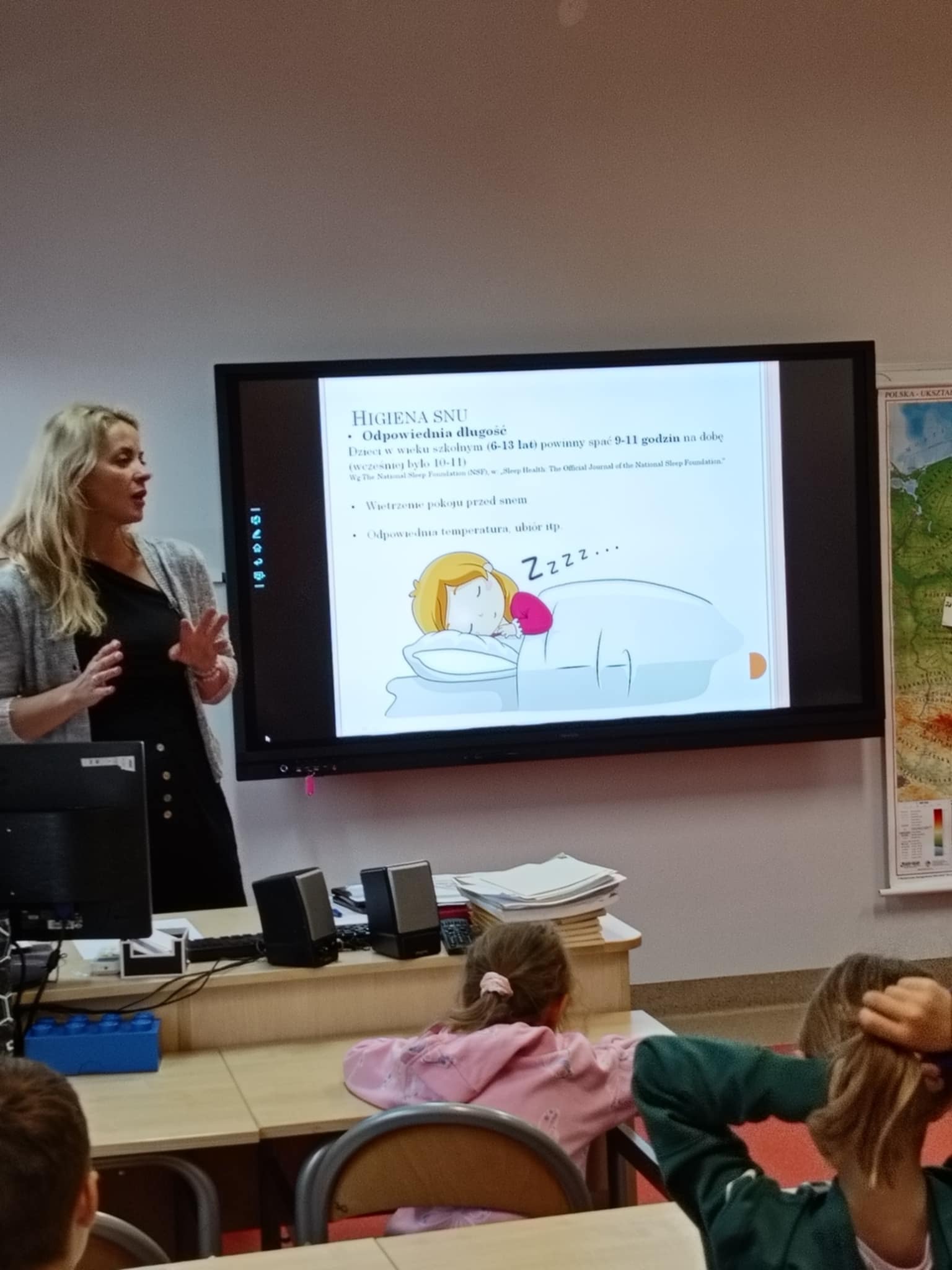 W piątek odwiedziła uczniów klas I-II pani Monika Pyzik, edukatorka z Powiatowej Stacji Sanitarno-Epidemiologicznej w Goleniowie. Z wykorzystaniem ciekawej prezentacji pani Monika przeprowadziła z dziećmi rozmowę na temat utrwalania bardzo ważnych zasad higieny osobistej, zarówno tej w domu, jaki i tej w szkole, czy na basenie oraz szeroko pojętych zdrowych nawyków żywieniowych, odpowiedniego stylu życia, długości snu, codziennego ruchu, tak ważnych dla rozwoju każdego dziecka.
