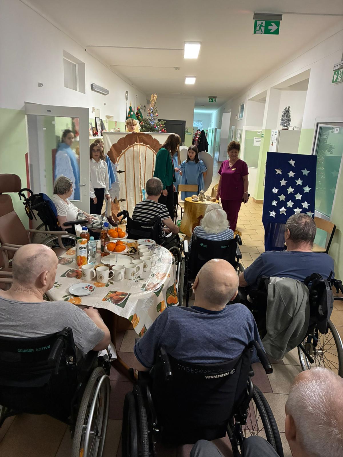 18 grudnia uczniowie z klasy 6 b pod opieką pani Sylwii Stępień-Kubiak udali się do Goleniowskiego Zakładu Opiekuńczo – Leczniczego, by zanieść podopiecznym i osobom tam pracującym uśmiech, życzliwość i serdeczność. Odbyło przedstawienie Bożonarodzeniowe pt.: ”Trzy klucze” przygotowane przez uczniów klasy 6 b oraz wspólne kolędowanie. Spotkanie dostarczyło nam wiele wzruszeń. Na pewno pozostanie na zawsze w naszej pamięci. Najważniejsze, że przekazaliśmy osobom, z którymi się spotkaliśmy wiadomość, że społeczność Szkoły Podstawowej nr 2 z Goleniowa (tj.: nauczyciele, pracownicy, rodzice i uczniowie) pamięta i wspiera osoby chore, samotne, które żyją tuż obok. Na naszych uczniów czekała miła słodka niespodzianka, którą przygotowały osoby pracujące w tym miejscu. Obiecaliśmy wrócić tu jeszcze, nie jeden raz.