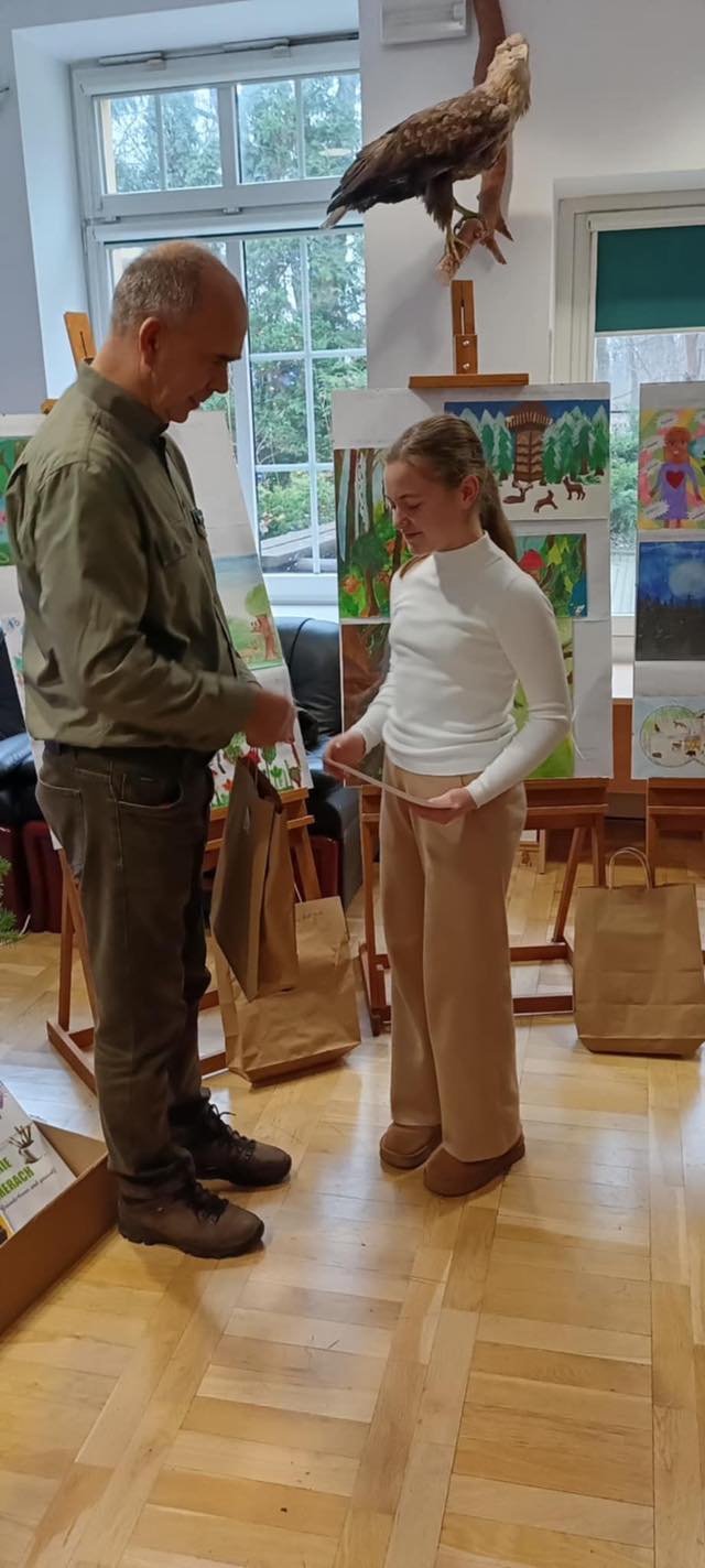 W świątecznie udekorowanej sali wspaniałe nagrody z rąk p.Nadleśniczego Marka Bieńka i p. Agnieszki Herman otrzymały: