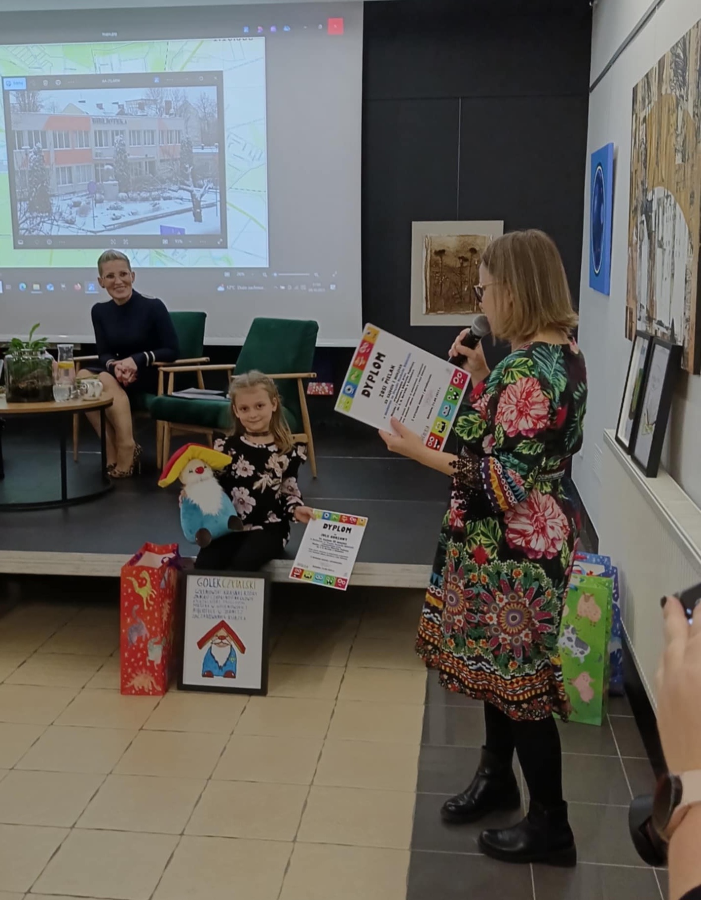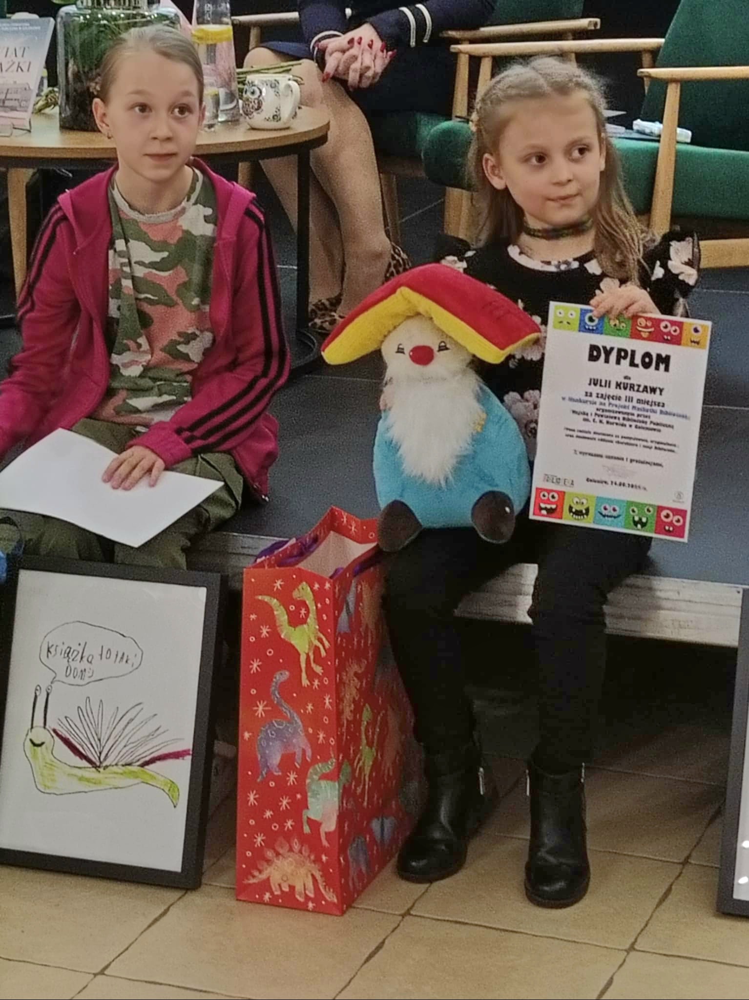 Wyjątkowe nagrody i dyplomy wręczyła laureatkom Pani JOLANTA MIĘKUS, Dyrektor Biblioteki. Julii podczas uroczystości towarzyszyli dumni i szczęśliwi Rodzice. I ja tam byłam, bardzo dumna z Julci i zachwycona. Brawo!