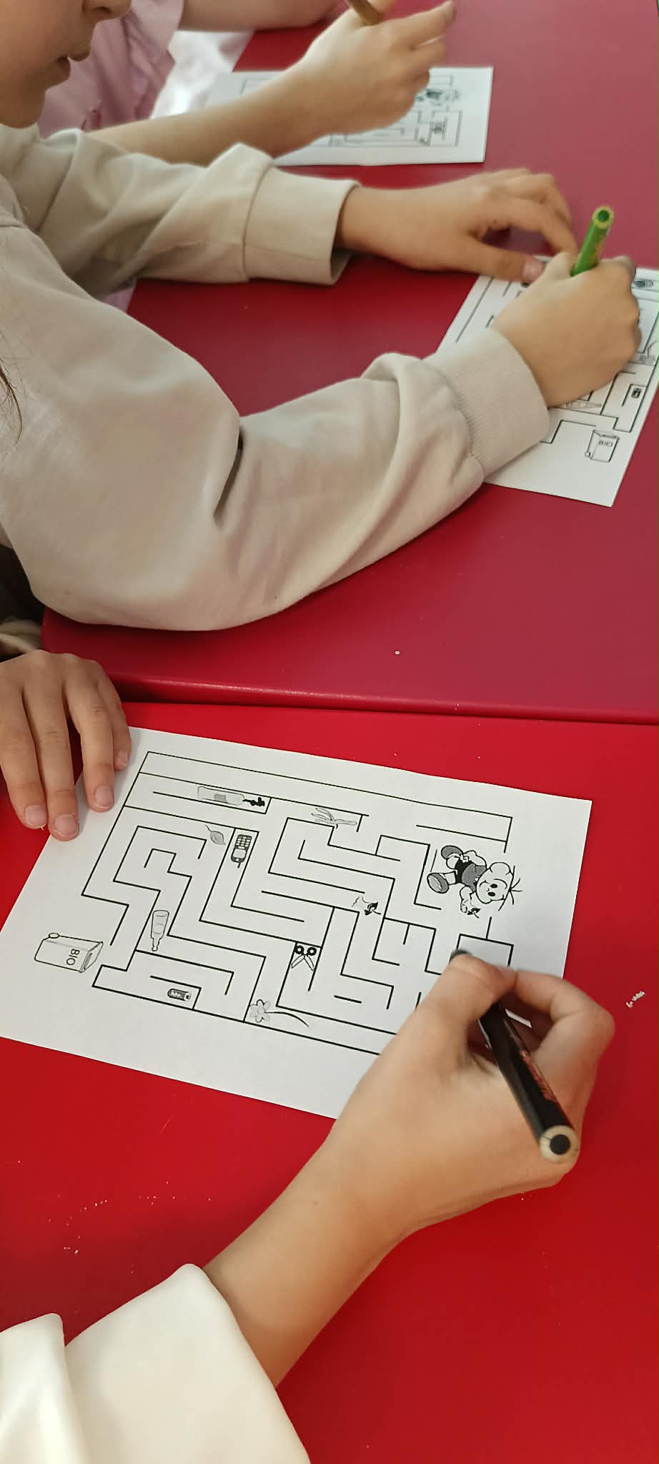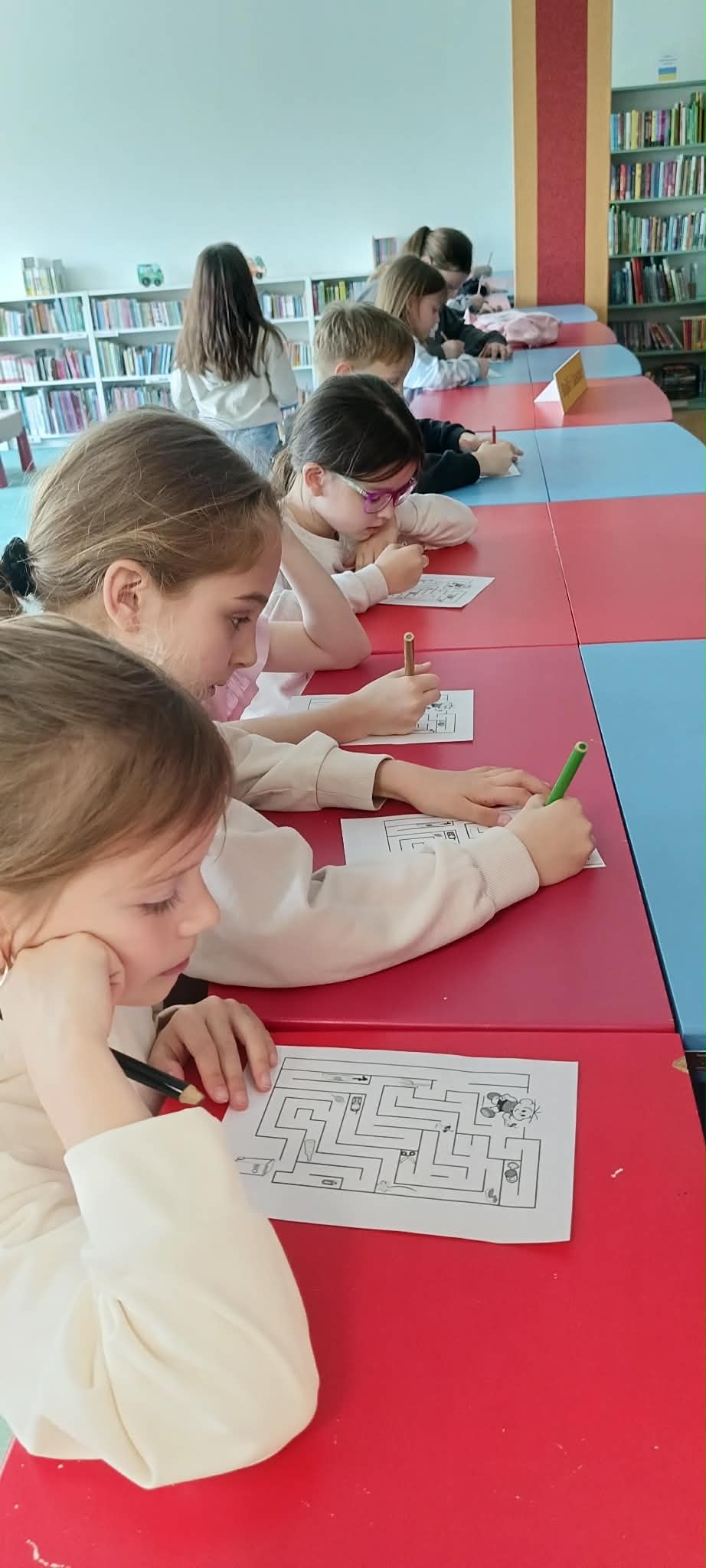 Następnie dzieci wykonały podobne zadanie na ekranie interaktywnym oraz indywidualną kartę pracy z labiryntem.